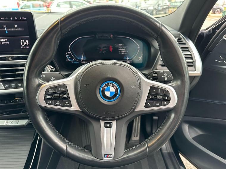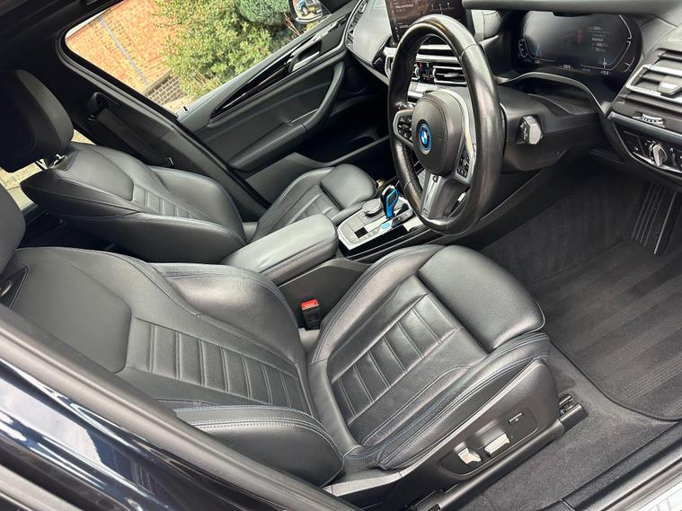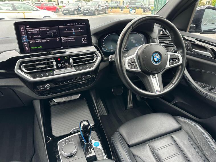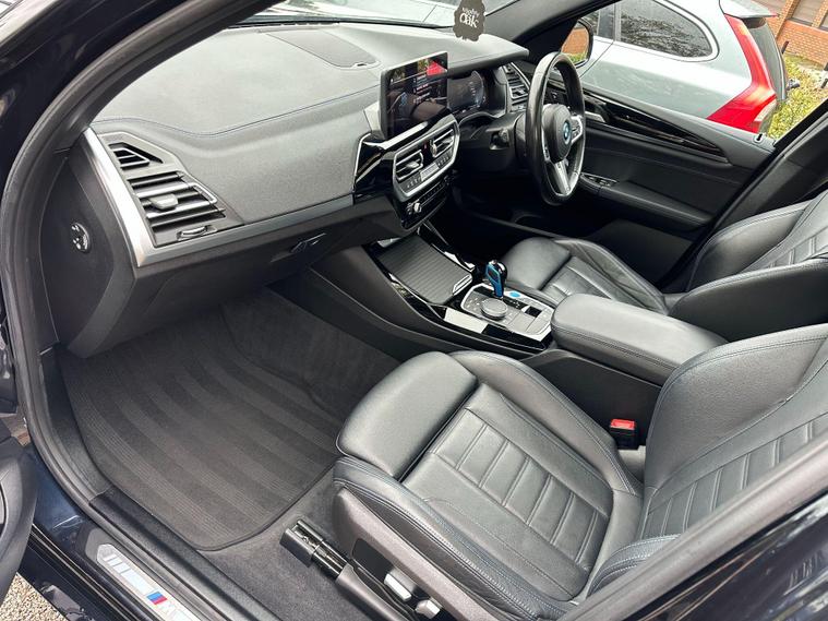 Discover this 2022 BMW iX3 M Sport, an exceptional electric vehicle offering a compelling blend of performance and practicality. This M Sport variant boasts an 80 kWh battery, providing a maximum range of 285 miles when new, ensuring you can travel further on a single charge. Charging is convenient, with a full charge at home taking approximately 11 hours and 20 minutes using a 7kW charger, while rapid public charging can replenish the battery from empty to 80% in just 32 minutes.This BMW iX3 M Sport comes equipped with notable features designed to enhance your driving experience. These include Adaptive LED Headlights for superior visibility, a Heated Steering Wheel for comfort in colder weather, and Enhanced Bluetooth with Wireless Charging for seamless connectivity. The Reversing Assist Camera aids in parking manoeuvres, and the Driving Assistant Professional package, featuring Adaptive Cruise Control, offers advanced driver assistance. The generous boot space further adds to the practicality of this impressive electric SUV, making it a standout choice for those seeking an electric vehicle that excels in both capability and comfort..