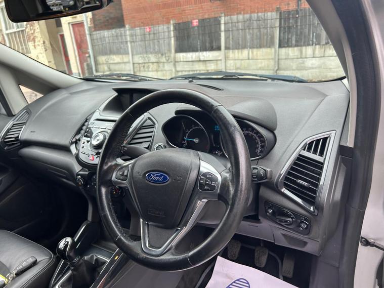 3 MONTH NATIONAL WARRANTY WITH AA COVER INCLUDED, 3 Main Dealer Services in History plus freshly serviced here with new 2026 MOT.This just 2 owner Ecosport 1.0 Titanium, Huge spec with SAT NAV , contrast black alloys, LEDs etc etc is an deal first car as it's a cheap to insure stylish car that will make you smile each time you drive it, is of course HPI clear and is still a great little car! At The Oaks Motor Company, we are a family-run business and aim to please with around 40 cars in daily stock. Let us know how we can help and we'll get you moving! Appointments at a time to suit you including out-of-hours. Part exchanges a pleasure..