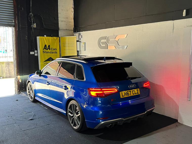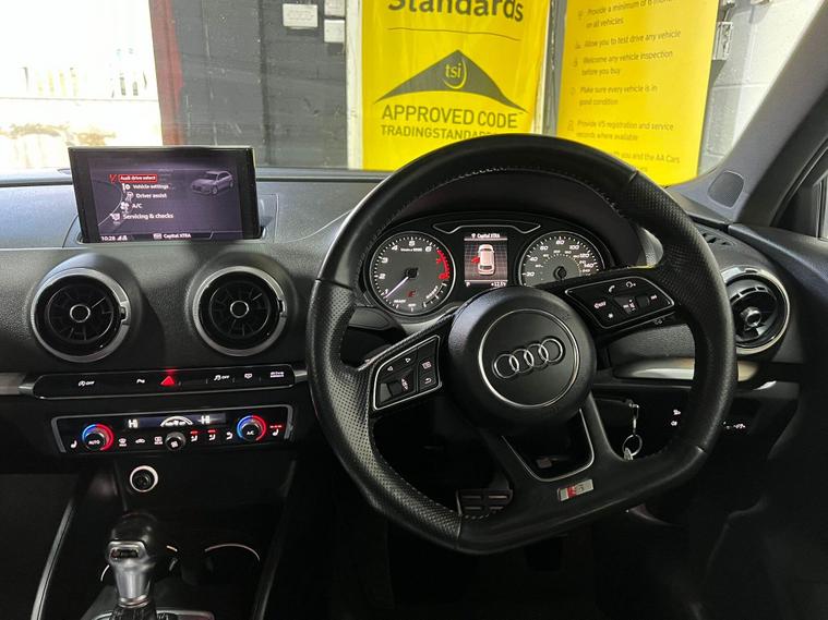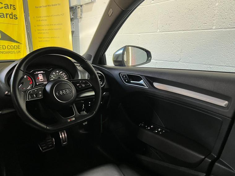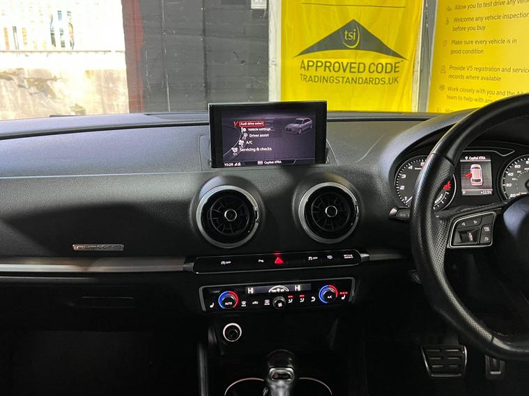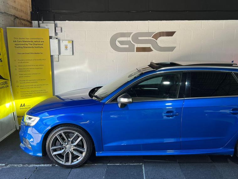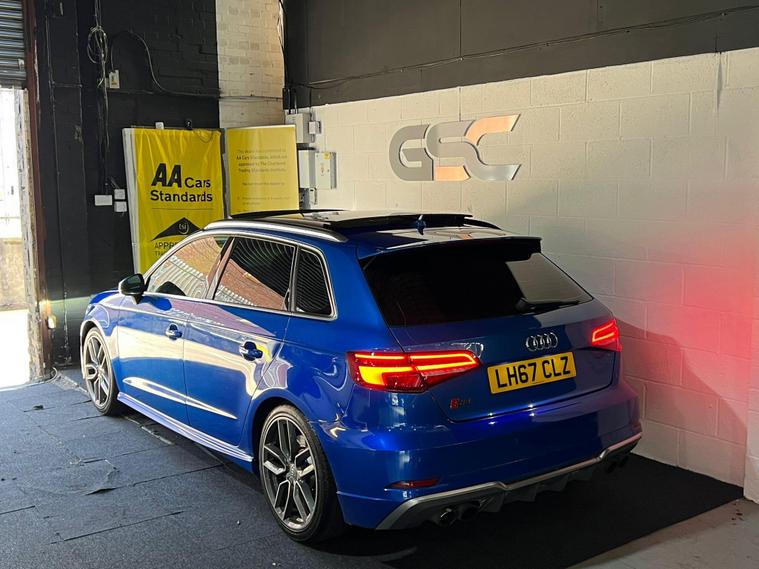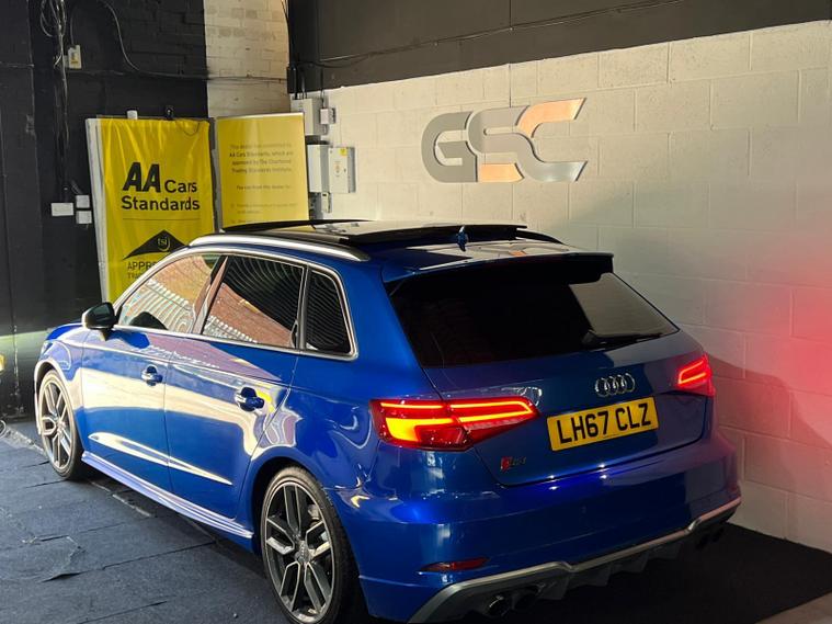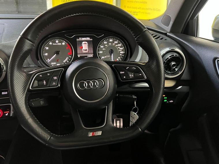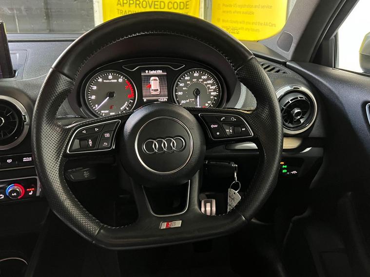 This 2017 Audi S3 TFSI presents an exceptional opportunity with its remarkably low mileage of just 38, 000 miles, a significant advantage for a vehicle of its age. This four wheel drive model boasts a powerful 2.0 litre petrol engine and meets Euro 6 emissions standards. It comes with a 3 month warranty for your peace of mind, and its MOT is valid until April 2026. The car benefits from a full service history and a clear vehicle history check, confirming its excellent provenance.Experience sophisticated driving with features like automatic LED headlights and dynamic rear indicators, complemented by a Bluetooth interface for seamless connectivity. Comfort is assured with heated front seats and dual zone electronic climate control, ensuring a pleasant environment in all conditions. The Audi S3 also offers generous boot space, making it practical for everyday use. Its impressive acceleration, reaching 0-62mph in just 4.6 seconds, sets it apart from many other vehicles in its class, demonstrating a superior blend of performance and refinement..