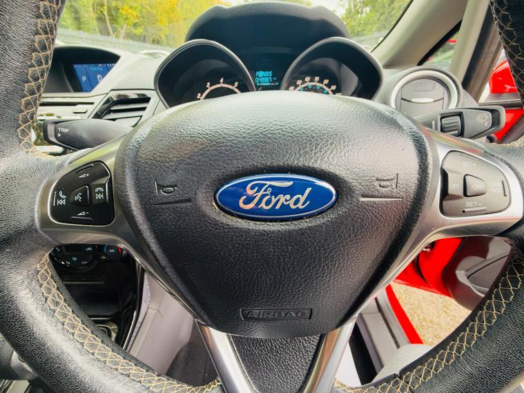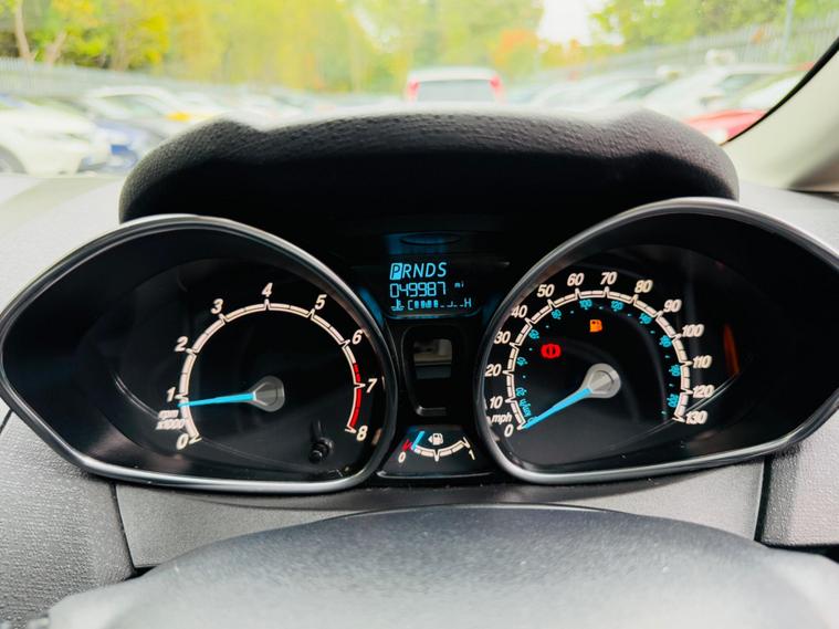 RED, SERVICE HSITORY, FINANCE AVAILABLE, PARKING SENSORS, ONLY ONE FORMER KEEPER, PRIVACY GLASS, CRUISE CONTROL, ULEZ COMPLIANT SUPERB DRIVE, VERY ECONOMICAL, ALLOY WHEELS, CLIMATE CONTROL, VERY WELL LOOKED AFTER, VERY CLEAN IN AND OUT.This Fiesta Titanium is equipped with desirable features to enhance your driving experience, including automatic headlights that adjust to light conditions and Electronic Automatic Temperature Control for effortless climate control. The Bluetooth hands free system allows for safe and convenient communication on the go. With an acceleration of 0 to 62 miles per hour in just 10.5 seconds, this car offers sprightly performance. Its low mileage of 49, 880 miles and its position within a low insurance group further highlight its appeal as a sensible and economical choice..