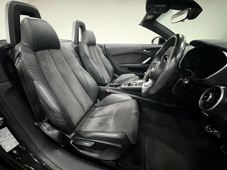 Here we have a very low mileage Audi TT Roadster finished in metallic Mythos Black with a Black half leather interior. The vehicle comes with full service history and very good specification including keyless start, heated front seats, virtual dash, lane assist, satellite navigation, DAB radio, bluetooth and electric folding mirrors. For more information please get in touch..