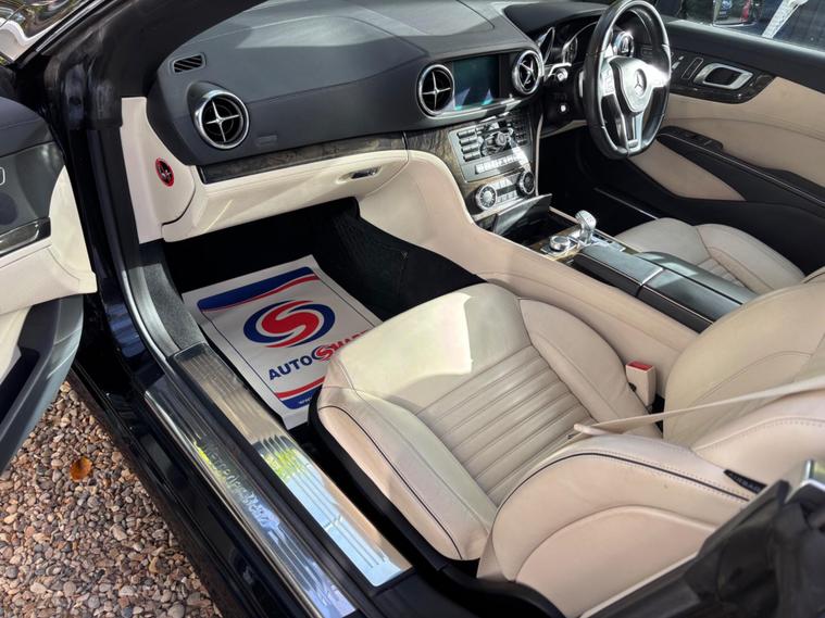 ALL VIEWINGS STRICTLY BY APPOINTMENT ONLY, FINANCE DELIVERY AND PX AVAILABLE, ONLY COVERED A GENUINE 60, 000 MILES WITH SERVICE HISTORY, COMES WITH MOT TILL OCTOBER 2026 WITH NO ADVISORIES AND A SERVICE, 6 MONTHS WARRANTY AND 12 MONTHS AA COVER, DRIVES EXCELLENT, NICE LOW MILEAGE EXAMPLE, PANORAMIC FIXED GLASS ROOF, CREAM HEATED LEATHER ELECTRIC SEATS, SATNAV, CRUISE, REAR PARKING SENSORS, BUY WITH CONFIDENCE READ OUR CUSTOMERS DEALER REVIEWS, UNDER COVER INDOOR SHOWROOM VIEWING, FULL DEALER FACILITIES.This 2014 Mercedes Benz SL350 AMG Sport benefits from a clear vehicle history check and will be supplied with a 12 month MOT for your peace of mind. This striking SL350 AMG Sport is powered by a 3.5 litre petrol engine and features the desirable AMG Sport trim. Inside, you will find electrically adjustable front seats with memory function and heated seats, perfect for any journey. The luxury automatic climate control ensures a comfortable cabin temperature, while the Bluetooth interface allows for hands free telephone calls. Automatic headlamp activation adds to the convenience of this sophisticated model.Experience exhilarating performance with the SL350 AMG Sport, capable of accelerating from 0 to 62 miles per hour in just 5.9 seconds, demonstrating its superior responsiveness compared to other vehicles in its class. This model also boasts a generous boot space, offering practicality alongside its performance credentials. With a recent service at 60, 000 miles and a 6 month warranty included, this Mercedes Benz SL offers a compelling combination of luxury, performance, and reassurance..