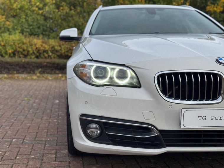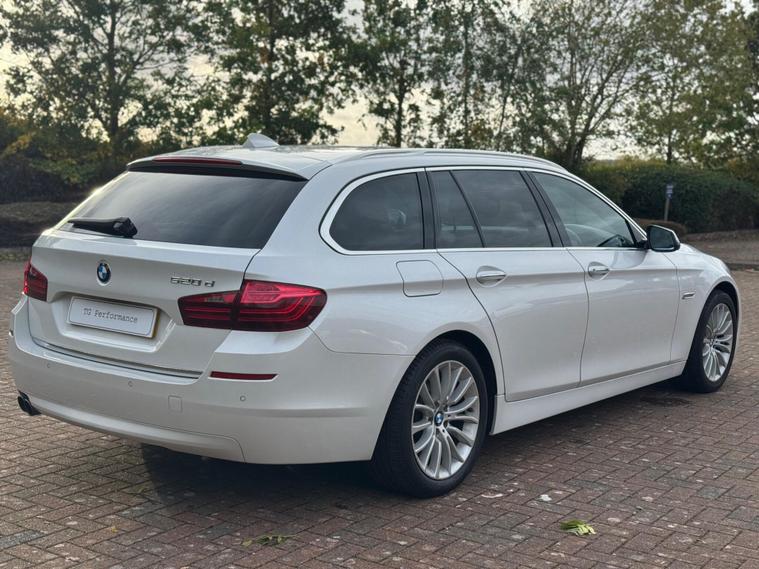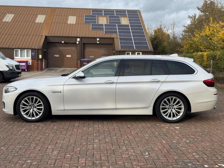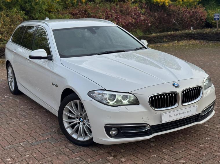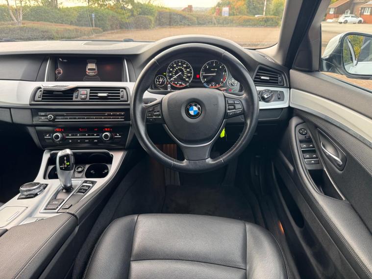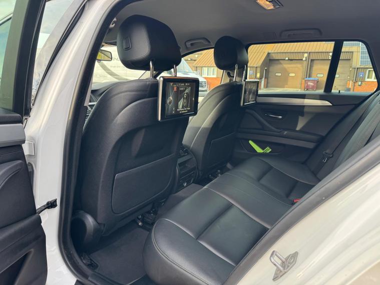 BMW 5 Series 2.0 520d Luxury Touring Auto Euro 6 (s/s) 5dr for sale, ULEZ, 2 Keys, Cruise Control, One Year Fresh MOT and a New Service with the car. This 2016 BMW 5 Series 520d Luxury is a prime example of refined motoring, having been cherished by only two owners. Underneath its sophisticated exterior lies a powerful yet efficient 2.0L Diesel Engine, meeting the Euro 6 emission standards. The Luxury trim level ensures a premium experience, further enhanced by the impressive Rear Seat Entertainment system, complete with BMW Professional and a dedicated pack, offering a new dimension to passenger comfort. For seamless connectivity and entertainment, it features Enhanced Bluetooth Telephone Preparation with USB Audio Interface and Voice Control, alongside TV Function and Online Entertainment.This BMW 5 Series excels with its brisk acceleration, achieving 0-62mph in just 8.0 seconds, demonstrating its dynamic performance. The generous boot space provides ample room for luggage or shopping, making it a practical choice for everyday life and longer journeys. These highlights, including the advanced entertainment options and strong performance figures, set this particular 520d Luxury apart from other vehicles in its class, offering a superior combination of luxury, technology, and driving pleasure..