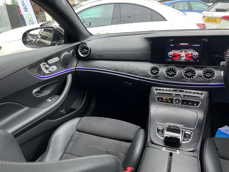 SELECT MOTORS (GB) IS DELIGHTED TO OFFER YOU THIS EYE CATCHING MERCEDES BENZ E220D AMG LINE PREMIUM 2DR IN MERCEDES BENZ INDIVIDUAL BLACK COLOUR AND COMPLEMENTED WITH 19IN 5 TWIN SPOKE DESIGN ALLOY WHEELS. THIS VEHICLE HAS A HUGE SPECIFICATION WHICH INCLUDES THE FOLLOWING; SATELLITE NAVIGATION SYSTEM, PANORAMIC SUNROOF, REVERSING CAMERA WITH 180 DEGREE VIEW AND FRONT AND REAR SENSORS, BLUETOOTH CONNECTIVITY FOR PHONE AND MEDIA, DAB-FM/AM RADIO, FRONT HEATED SEATS, LANE ASSIST, CRUISE CONTROL WITH SPEED LIMITER, TWO ZONE AUTOMATIC CLIMATE CONTROL, AMBIENT LIGHTING, ELECTRIC PARKING BREAK, DYNAMIC SELECT WITH A CHOICE OF DRIVING MODES, 8.4 IN MULTIMEDIA COLOUR DISPLAY HIGH RESOLUTION SCREEN, KEYLESS START ENGINE GO WITH START AND STOP PUSH BUTTON, ACTIVE BREAK ASSIST, LED HIGH PERFORMANCE HEADLIGHTS WITH INTEGRATED LED DAYTIME RUNNING LIGHTS, TYRE PRESSURE WARNING SYSTEM. THIS VEHICLE IS ULEZ EXEMPT. WE ARE OFFERING NATIONWIDE DELIVERY ON ALL VEHICLE (PLEASE GET IN TOUCH DIRECTLY FOR DETAILS). WE CAN ALSO CONDUCT VIRTUAL VIEWINGS AND ACCOMMODATE ANY REQUESTS YOU MAY HAVE. ALL OUR ADVERTISED STOCK IS TEST-DRIVEN, INSPECTED BY OUR MECHANIC TO MAKE SURE OUR CUSTOMERS DRIVE AWAY WITH THE BEST QUALITY CARS. WE CAN PROVIDE A VIDEO WALK AROUND THIS VEHICLE UPON REQUEST., ALL OF OUR VEHICLES ARE SUPPLIED WITH A 3 MONTHS WARRANTY WITH EXTENDED OPTION. 12 MONTHS FREE AA BREAKDOWN COVER. FINANCE AVAILABLE..