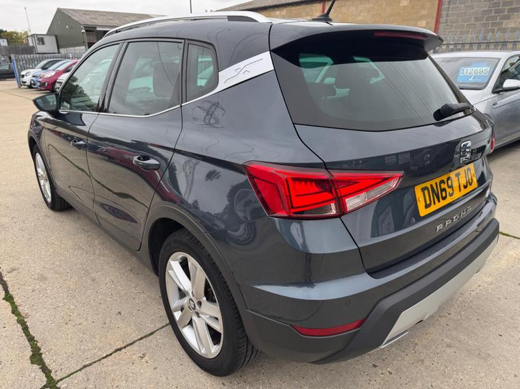 This 2019 SEAT Arona TSI FR is presented with a clear vehicle history check, offering you peace of mind. This stylish compact SUV features a 1.0 litre Euro 6 compliant petrol engine, ensuring it meets modern emission standards. The FR trim level enhances its sporty appeal, and you'll appreciate the convenience of steering wheel mounted gearshift paddles, automatic headlights with full LED illumination, and a Bluetooth system for seamless audio streaming and handsfree calls. For added ease when parking, rear parking sensors are also included.With an impressive highlight fuel economy of 48 miles per gallon, this SEAT Arona demonstrates excellent efficiency compared to many other vehicles in its class. Its low CO2 emissions further contribute to its cost effective running. This combination of practical features, efficient performance, and strong provenance makes the Arona TSI FR a compelling choice for those seeking a well equipped and economical compact SUV..