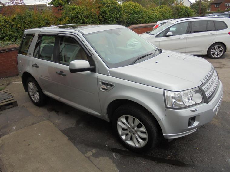LAND ROVER FREELANDER 2 2.2 SD4 HSE COMMANDSHIFT AUTOMATIC.EURO 5.METALLIC SILVER WITH CONTRASTING CREAM LEATHER.VERY DESIRABLE AUTOMATIC TOWING CAR WITH GREAT SPEC AND FULL SERVICE dealer's website WITH SAT NAV, PANORAMIC SUNROOF, BLUETOOTH CONNECTIVITY.FRONT AND REAR PARKING SENSORS, HEATED ELECTRIC SEATS, AIR CON, CRUISE CONTROL, ALPINE MUSIC, 18 INCH ALLOYS AND FITTED TOWBAR.DRIVES SUPERB WITH MOT UNTIL OCTOBER 2026 AND FRESH SERVICE.12 MONTHS FREE AA BREAKDOWN COVER AND 6 MONTHS WARRANTY INCLUDED IN PRICE.FINANCE AVAILABLE P/X WELCOME..
