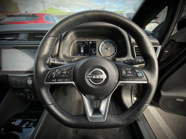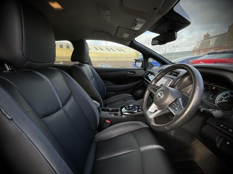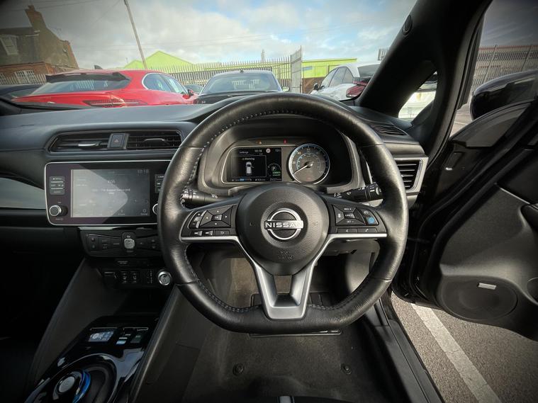 This 2023 Nissan Leaf Tekna is presented with a clear vehicle history check, offering you peace of mind. As an electric vehicle, it boasts a 41 kWh battery with a maximum range of 168 miles when new. Charging is convenient, taking approximately 7 hours and 30 minutes for a full charge at home using a 7kW charger, while rapid public charging from empty to 80% can be achieved in just 1 hour and 20 minutes. The Nissan Leaf Tekna stands out with its generous boot space, providing ample room for your shopping or luggage. Its electric powertrain offers an efficient and smooth driving experience, making it a practical choice for daily commutes and longer journeys alike. The combination of its impressive range, straightforward charging options, and the assurance of a clear vehicle history check makes this 2023 Nissan Leaf Tekna a compelling option..