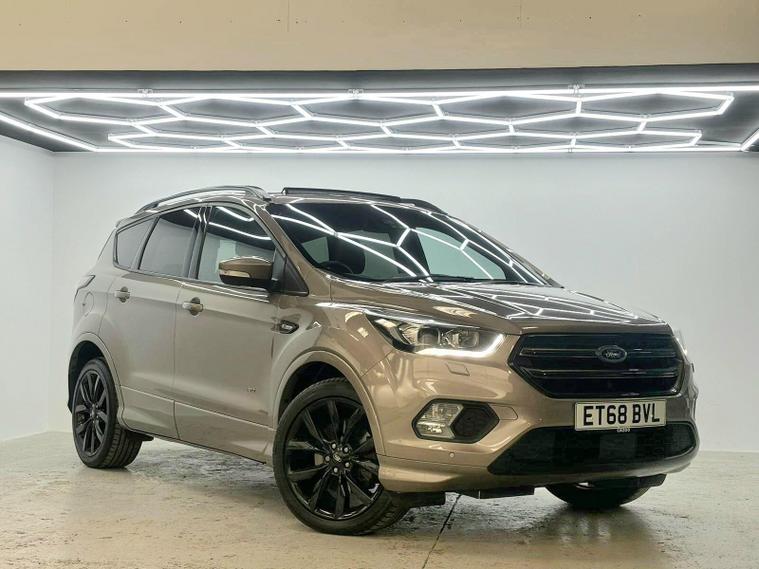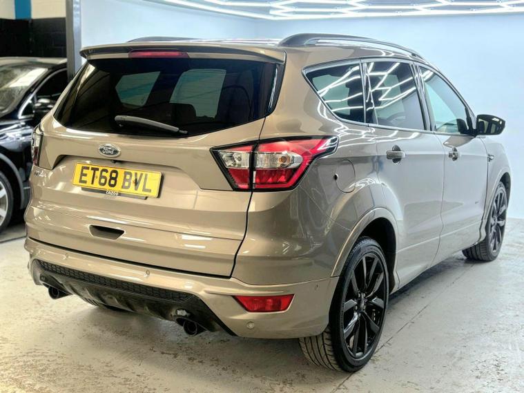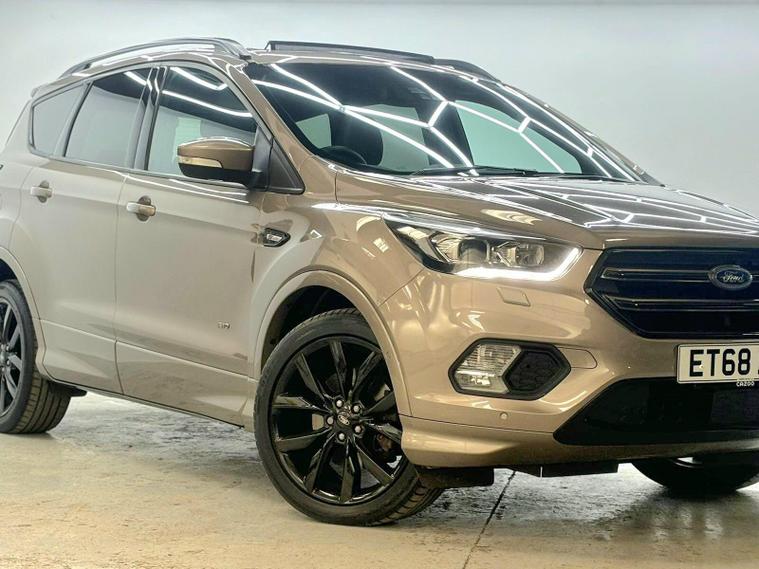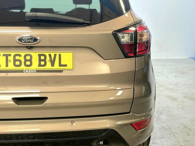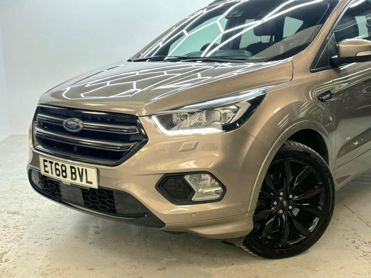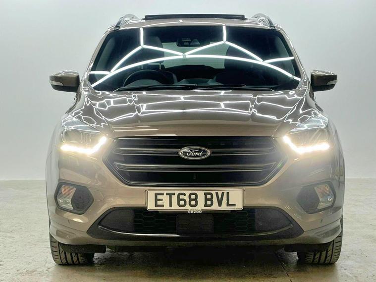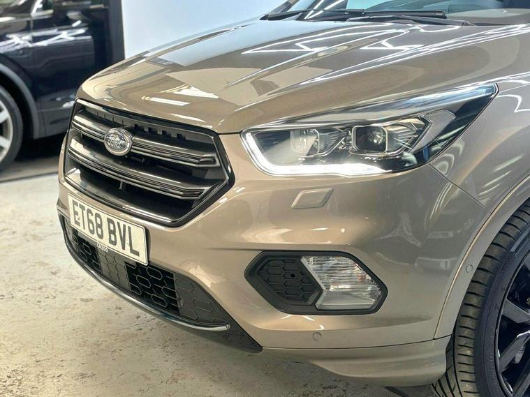 This 2019 Ford Kuga TDCi ST-Line X offers a compelling blend of style and advanced technology. Powered by a robust 2.0L Diesel engine and featuring Four Wheel Drive capability, this Euro 6 compliant model ensures confident performance in various conditions. Inside, you'll find the Premium Ford DAB Navigation System with Ford SYNC3, offering seamless Bluetooth connectivity and convenient parking assistance with a rear camera. The ST-Line Style Pack enhances its sporty appeal with striking Xenon headlights, while the ST-Line X trim level ensures a premium feel throughout.Further enhancing your driving experience, this Kuga is equipped with the Driver Assistance Pack, which includes the Blind Spot Information System (BLIS) with Blind Spot Assistance, providing an extra layer of safety. The inclusion of a large rear spoiler adds to its dynamic aesthetic. These features, combined with its efficient diesel engine and advanced four wheel drive system, position this Ford Kuga as a superior choice for those seeking a well equipped and capable SUV..