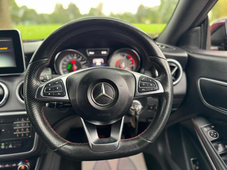 This 2015 Mercedes Benz CLA180 AMG Sport is a standout example, having been cherished by only two owners. It boasts a sophisticated AMG Sport trim and is powered by an efficient 1.6L petrol engine, meeting the Euro 6 emission standards. Inside, you'll find the desirable AMG Exclusive Package featuring luxurious Lava Black leather with striking red perforations. This CLA also comes equipped with stylish 18in AMG Multi-Spoke alloy wheels in a black finish, a helpful reversing camera with parking guidelines, a tyre pressure monitoring system, and an 8-inch tablet-style colour display for all your infotainment needs.Experience exceptional running costs with this Mercedes Benz CLA, achieving an impressive fuel economy of 51 miles per gallon. Its low CO2 emissions and low insurance group rating further contribute to its affordability, making it a sensible choice compared to many other vehicles in its class. This combination of premium features, efficient performance, and cost-effective ownership makes the CLA180 AMG Sport a compelling proposition..