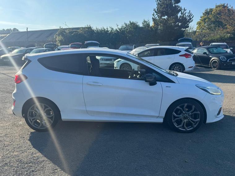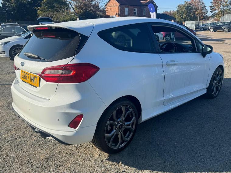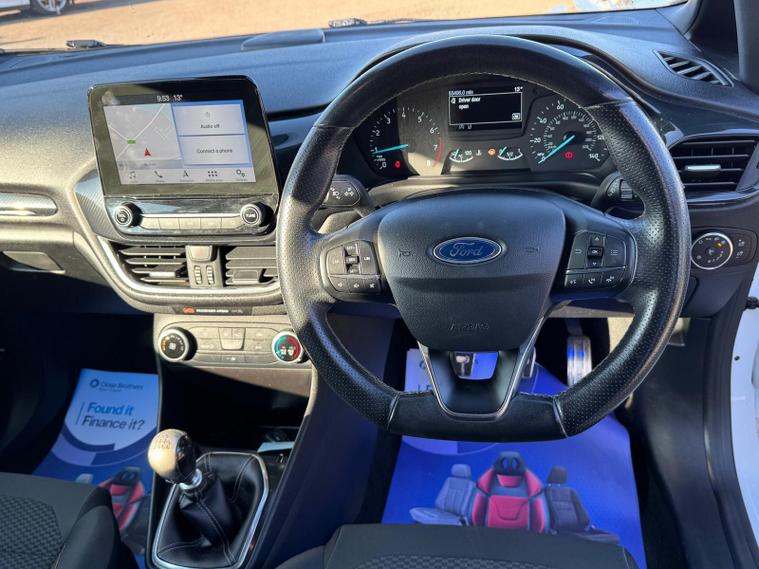 This 2018 Ford Fiesta ST Line offers exceptional value with its remarkably low mileage of just 53, 404 miles for its age, all backed by a clear vehicle history check. This popular hatchback is powered by an efficient 1.0L petrol engine, meeting Euro 6 emissions standards. Inside, you'll find a manual air conditioning system for your comfort, and the convenience of automatic on-off headlights. Stay connected and entertained with the Ford DAB radio featuring Ford SYNC3, which seamlessly integrates with both Apple CarPlay and Android Auto.Experience impressive fuel economy with this Fiesta, achieving a highlight of 59 miles per gallon, alongside low CO2 emissions, making it an economical choice. Its acceleration from 0 to 62 miles per hour in 10.6 seconds indicates a responsive driving experience that stands out compared to other vehicles in its class. The inclusion of the NCAP Pack further enhances its safety credentials..