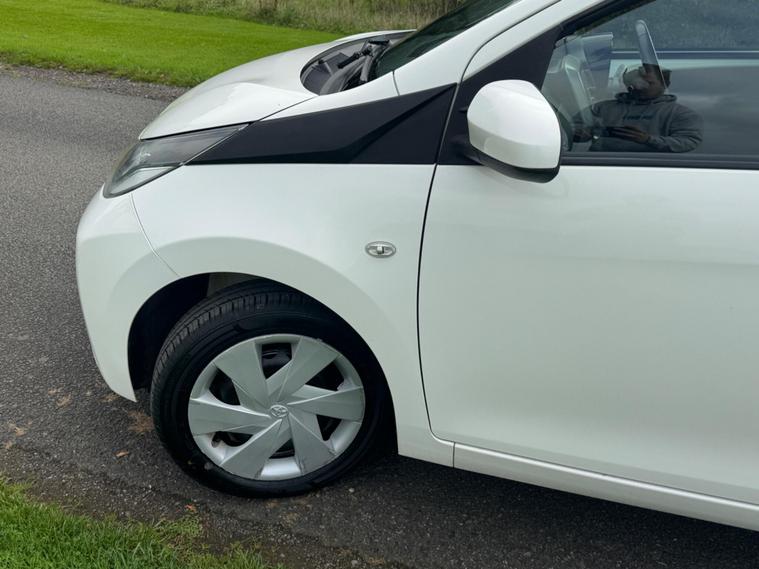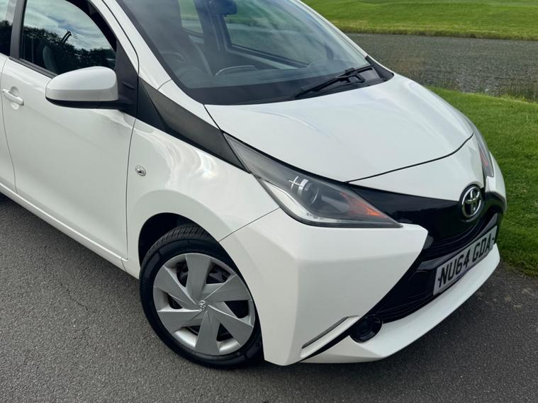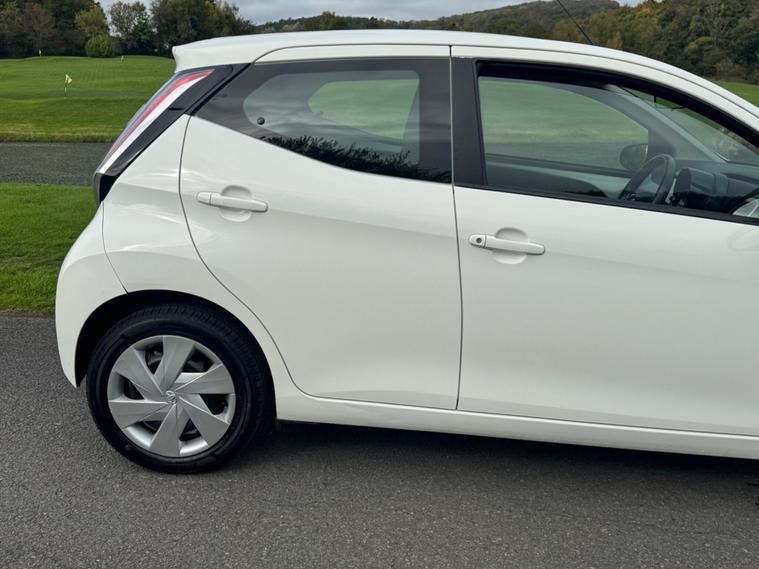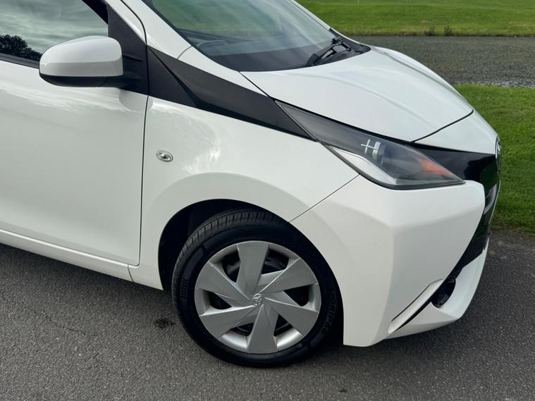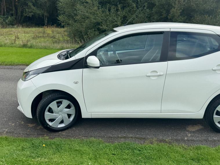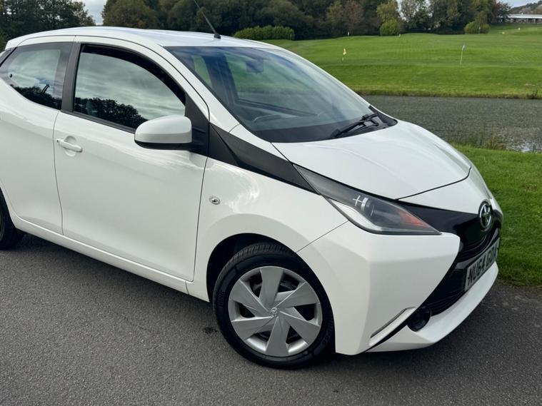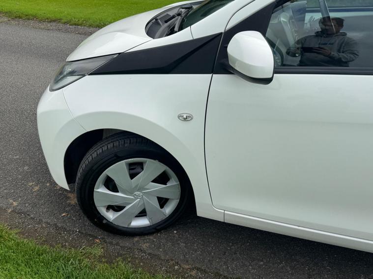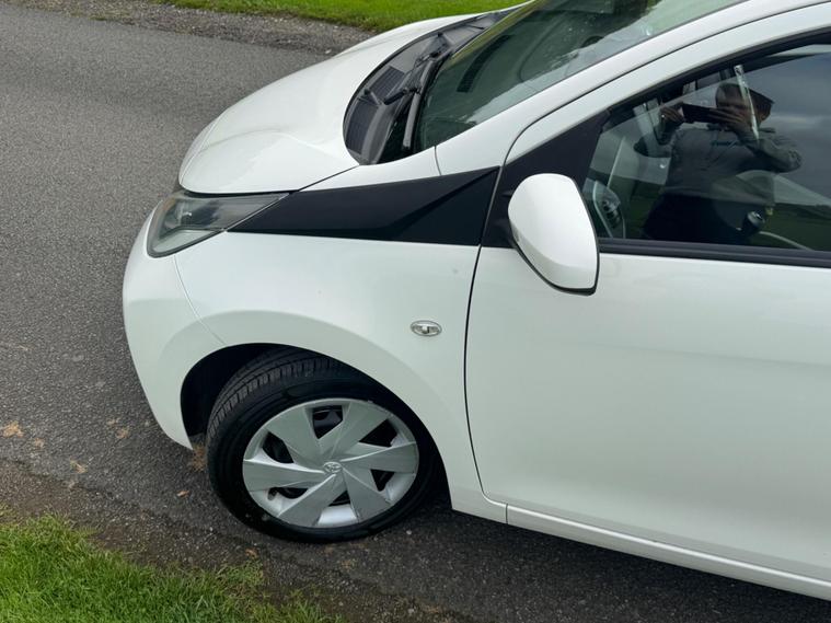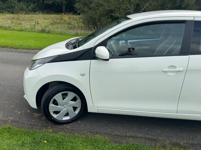 We are pleased to be presenting this 2014 Toyota Aygo 1.0 VVT-i x-play Euro 5 5dr, finished in white and showing 59, 000 miles. This example has had 2 owners from new and is ULEZ compliant.It comes with full service history, and the clutch was replaced last year. As part of our pre-sale preparation, we have fitted four new tyres and replaced the front brake discs and pads.Powered by Toyota’s chain-driven 1.0 VVT-i petrol engine, there is no timing belt to worry about. Running costs are low with up to 65 MPG and £20 annual road tax.Being the x-play trim, it includes air conditioning, Bluetooth phone connectivity, reversing camera, and remote central locking.As with all our vehicles, this Toyota has been treated to a multi-stage valet using the best products Auto Glym have to offer. Every car we sell receives, at minimum, a service as part of our pre-sale preparation. Supplied with 12 months MOT without advisory, our complimentary 3-month warranty, 12 months free AA breakdown cover, and 2 keys.Please do not hesitate to get in touch via Text, Call or Email at any time to arrange a viewing and test drive. Viewing available by appointment only. To find out more about us, head to our website at dealer's website Whilst every effort has been made to ensure the accuracy of the above information, sometimes errors may occur—please check with a salesperson..