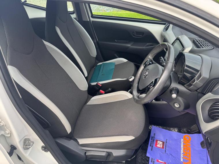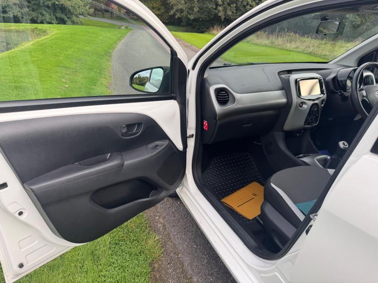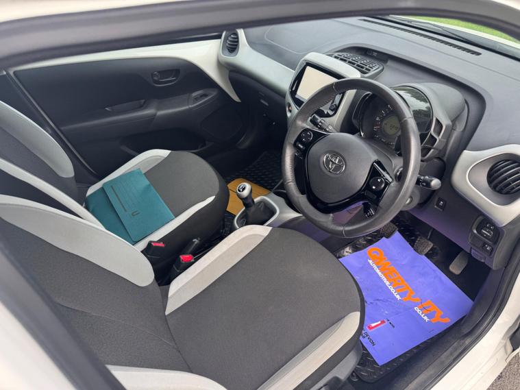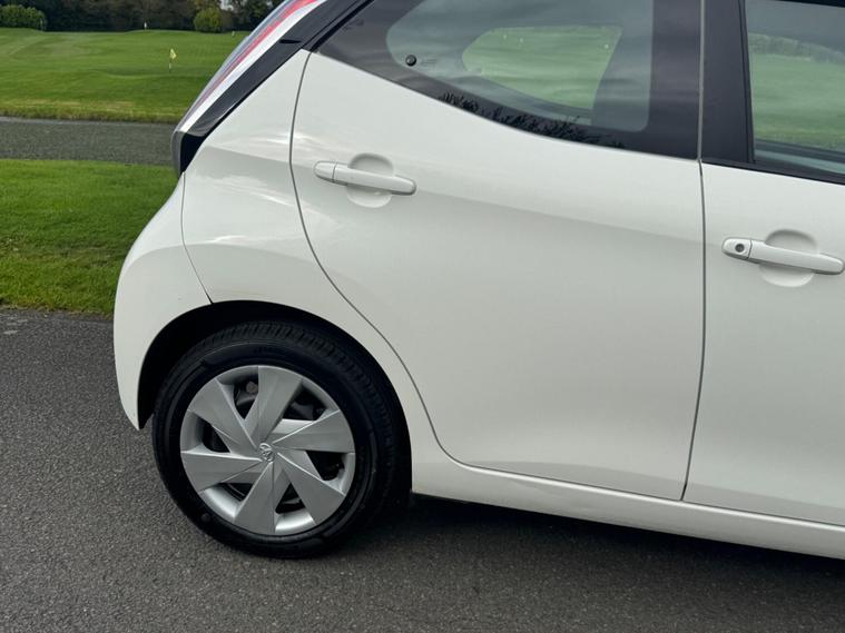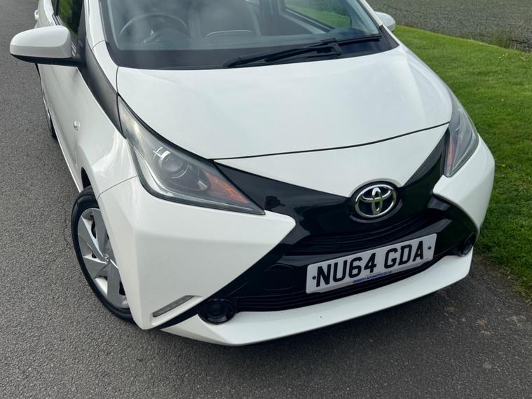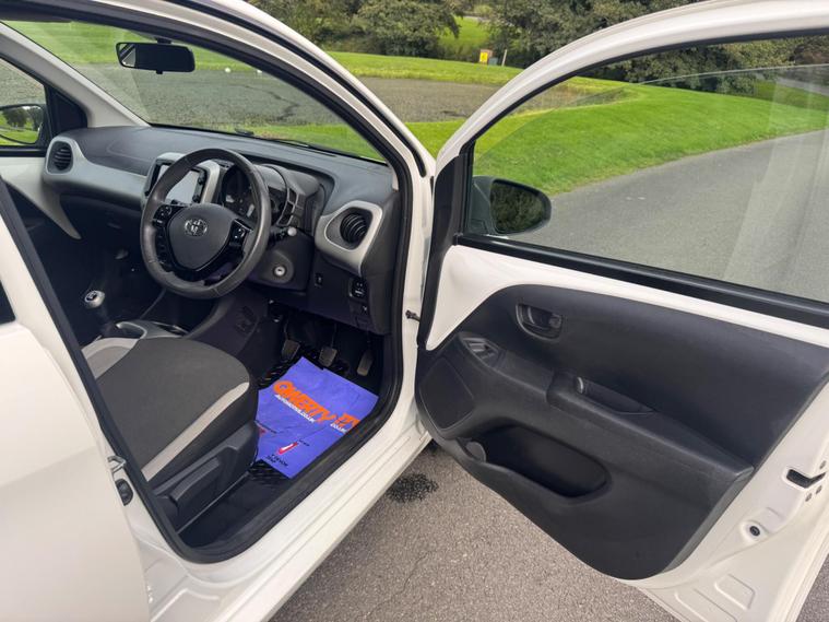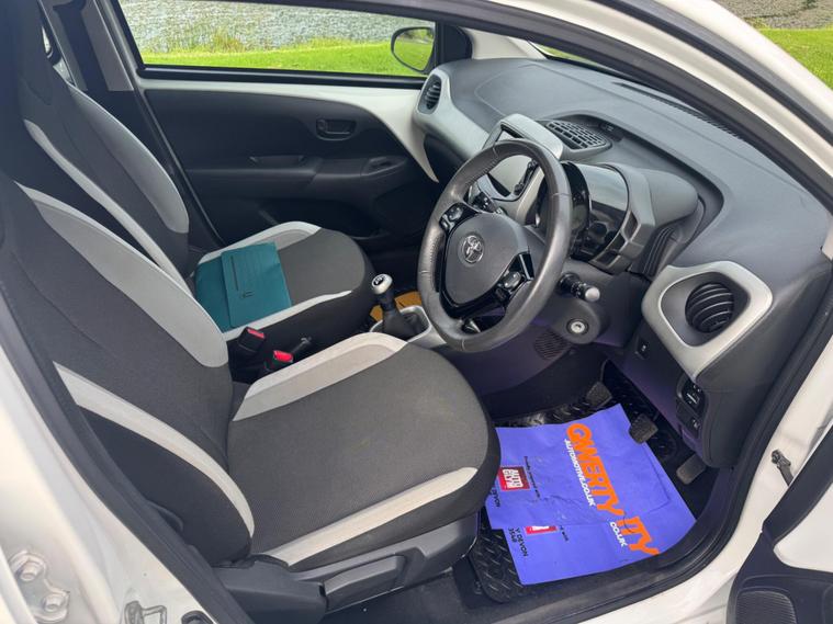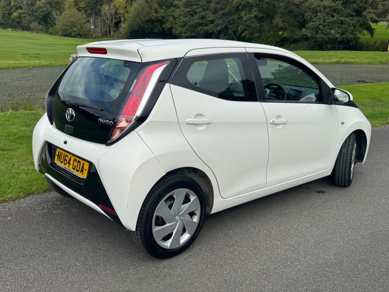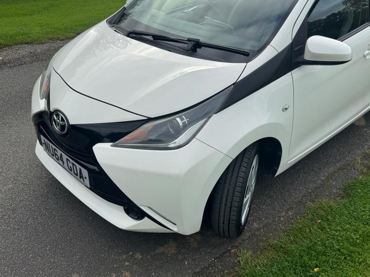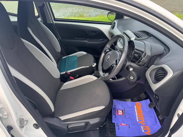We are pleased to be presenting this 2014 Toyota Aygo 1.0 VVT-i x-play Euro 5 5dr, finished in white and showing 59, 000 miles. This example has had 2 owners from new and is ULEZ compliant.It comes with full service history, and the clutch was replaced last year. As part of our pre-sale preparation, we have fitted four new tyres and replaced the front brake discs and pads.Powered by Toyota’s chain-driven 1.0 VVT-i petrol engine, there is no timing belt to worry about. Running costs are low with up to 65 MPG and £20 annual road tax.Being the x-play trim, it includes air conditioning, Bluetooth phone connectivity, reversing camera, and remote central locking.As with all our vehicles, this Toyota has been treated to a multi-stage valet using the best products Auto Glym have to offer. Every car we sell receives, at minimum, a service as part of our pre-sale preparation. Supplied with 12 months MOT without advisory, our complimentary 3-month warranty, 12 months free AA breakdown cover, and 2 keys.Please do not hesitate to get in touch via Text, Call or Email at any time to arrange a viewing and test drive. Viewing available by appointment only. To find out more about us, head to our website at dealer's website Whilst every effort has been made to ensure the accuracy of the above information, sometimes errors may occur—please check with a salesperson..