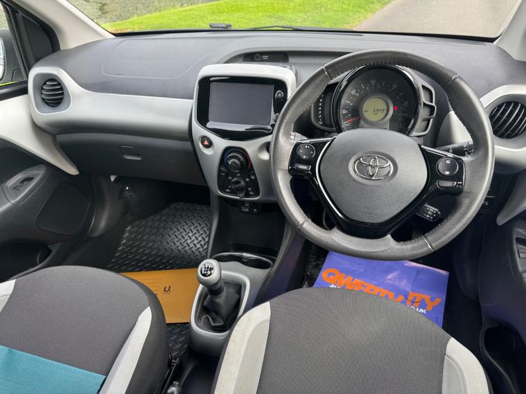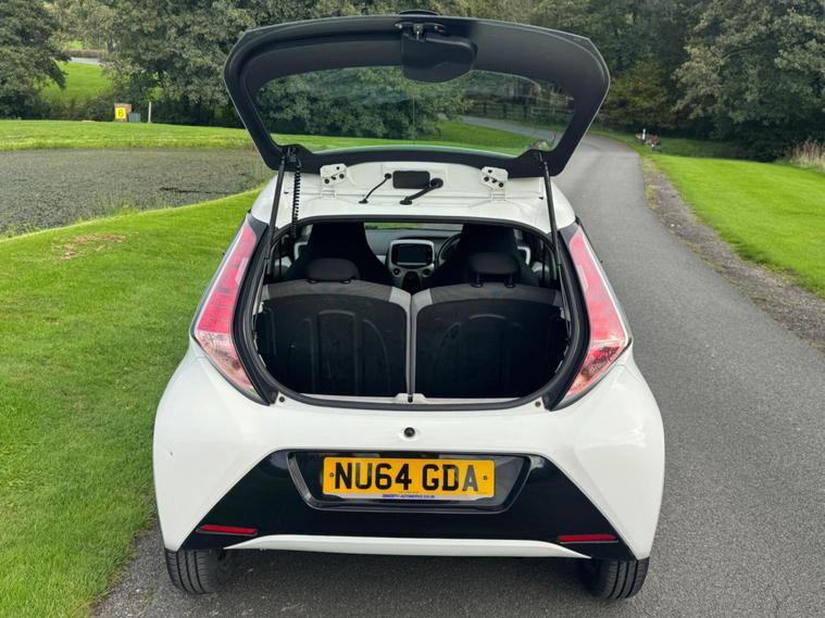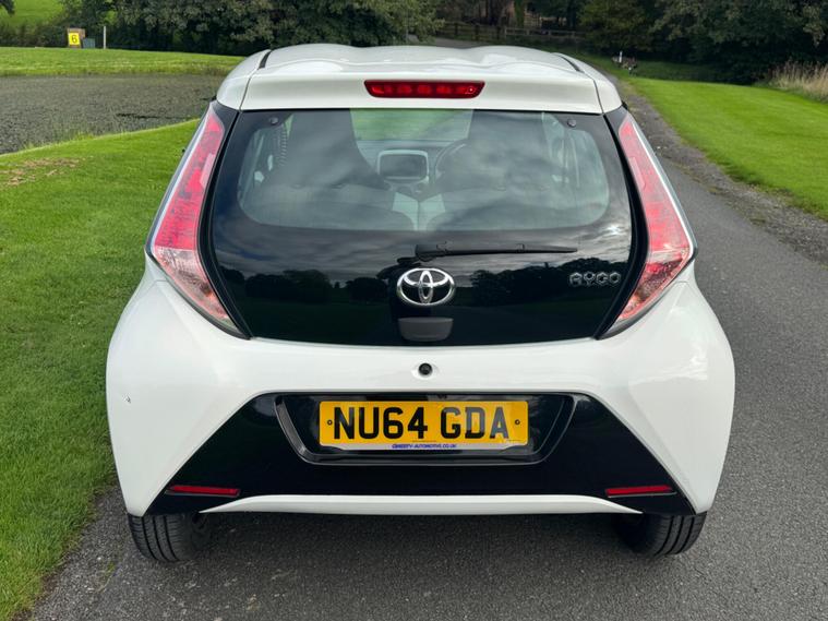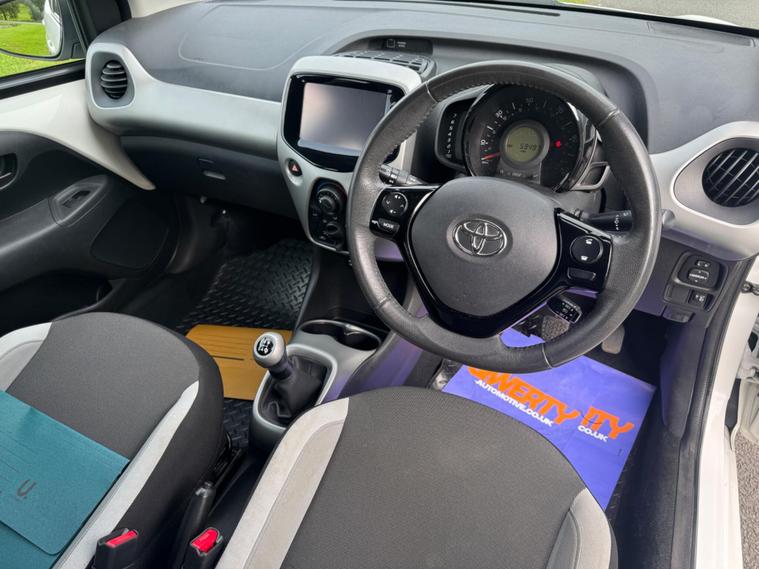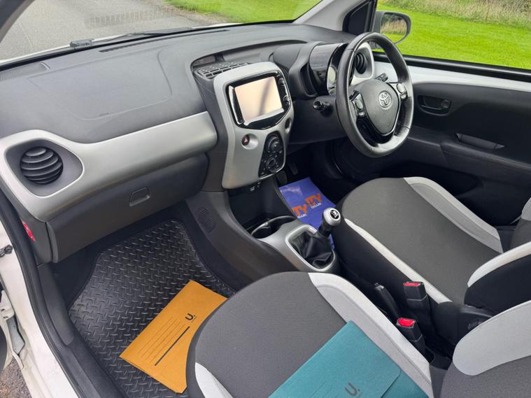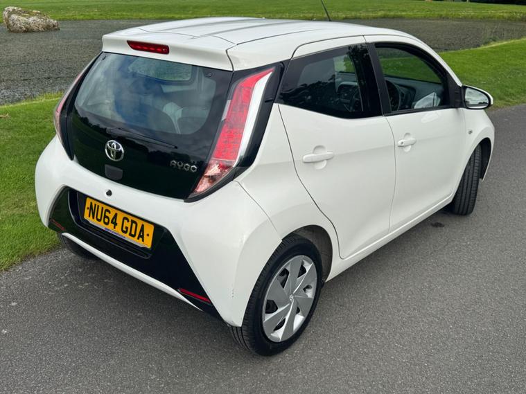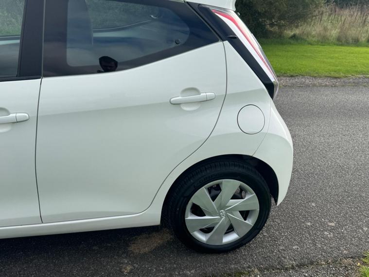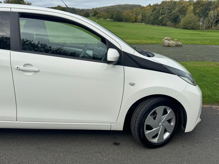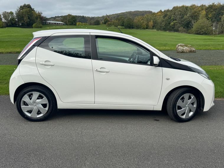 We are pleased to be presenting this 2014 Toyota Aygo 1.0 VVT-i x-play Euro 5 5dr, finished in white and showing 59, 000 miles. This example has had 2 owners from new and is ULEZ compliant.It comes with full service history, and the clutch was replaced last year. As part of our pre-sale preparation, we have fitted four new tyres and replaced the front brake discs and pads.Powered by Toyota’s chain-driven 1.0 VVT-i petrol engine, there is no timing belt to worry about. Running costs are low with up to 65 MPG and £20 annual road tax.Being the x-play trim, it includes air conditioning, Bluetooth phone connectivity, reversing camera, and remote central locking.As with all our vehicles, this Toyota has been treated to a multi-stage valet using the best products Auto Glym have to offer. Every car we sell receives, at minimum, a service as part of our pre-sale preparation. Supplied with 12 months MOT without advisory, our complimentary 3-month warranty, 12 months free AA breakdown cover, and 2 keys.Please do not hesitate to get in touch via Text, Call or Email at any time to arrange a viewing and test drive. Viewing available by appointment only. To find out more about us, head to our website at dealer's website Whilst every effort has been made to ensure the accuracy of the above information, sometimes errors may occur—please check with a salesperson..