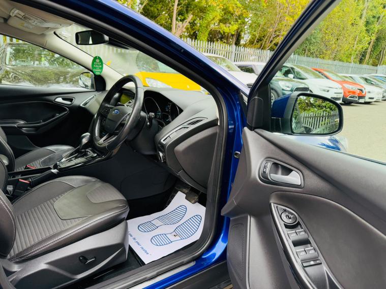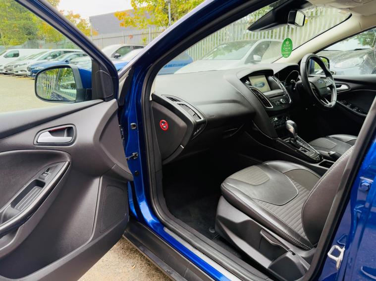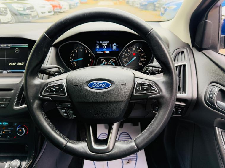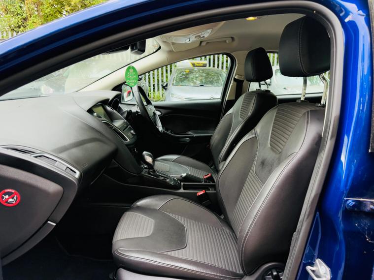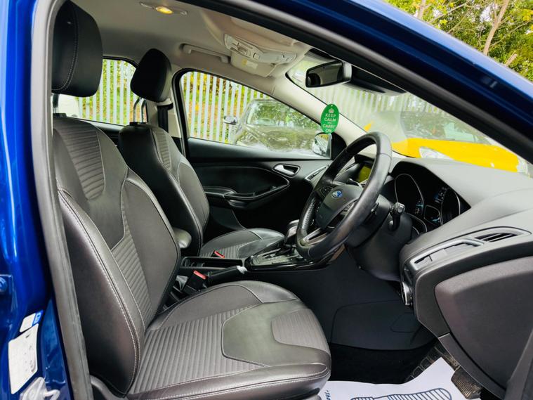 BLUE, SERVICE HISTORY, FINANCE AVAILABLE, NAVIGATION SYSTEM, PARKING CAMERA, HEATED SEATS, ONLY ONE FORMER KEEPER, SPARE KEYS, PRIVACY GLASS, START/STOP, CRUISE CONTROL, ULEZ COMPLIANTSUPERB DRIVE, VERY ECONOMICAL, ALLOY WHEELS, CLIMATE CONTROL, VERY WELL LOOKED AFTER, VERY CLEAN IN AND OUTThis 2015 Ford Focus Titanium X presents an exceptional ownership proposition with its remarkably low mileage of just 32, 889 miles, a testament to its single owner history. This Euro 6 compliant 1.0 litre petrol model, registered in 2015, boasts a clear vehicle history check and an MOT valid until July 2026, offering peace of mind. The Titanium X trim level ensures a well equipped driving experience, featuring desirable additions such as heated driver and passenger seats for enhanced comfort, a rear view camera and front parking sensors to aid manoeuvrability, and Bluetooth handsfree for seamless connectivity.Further enhancing this Focus are the Bi-Xenon headlights, providing superior illumination. The generous boot space is a practical highlight, making it ideal for everyday use and longer journeys. These combined elements, including the exceptionally low mileage and single owner status, clearly set this particular Ford Focus apart from others you might find, offering a compelling package of comfort, technology, and practicality..
