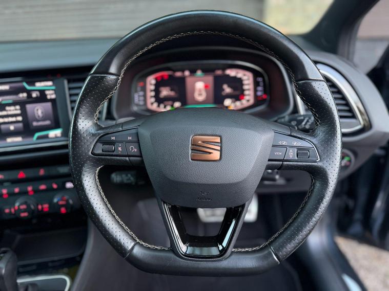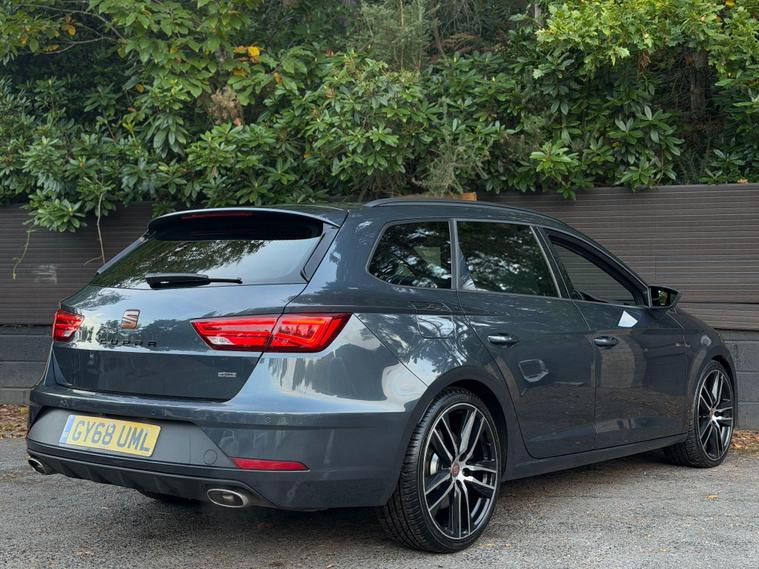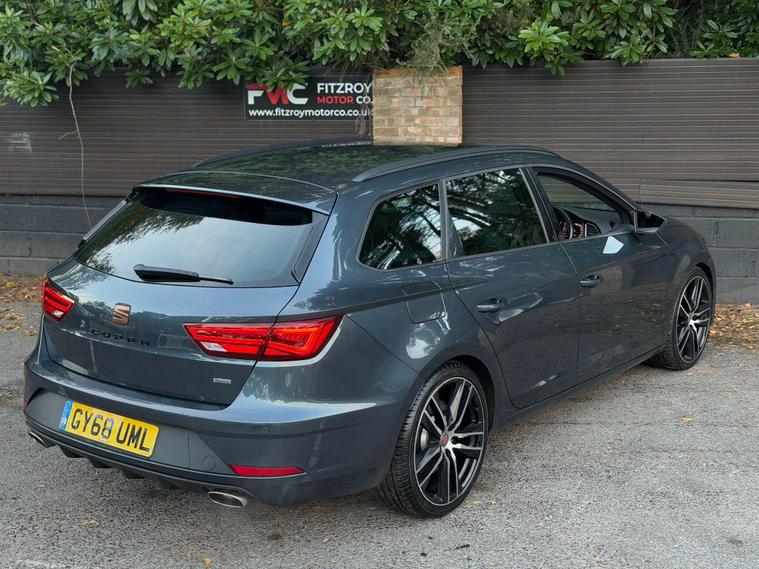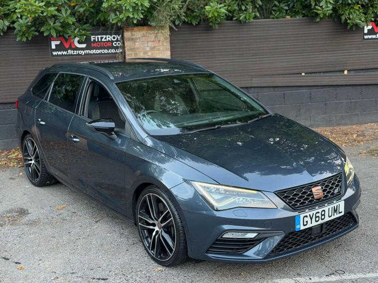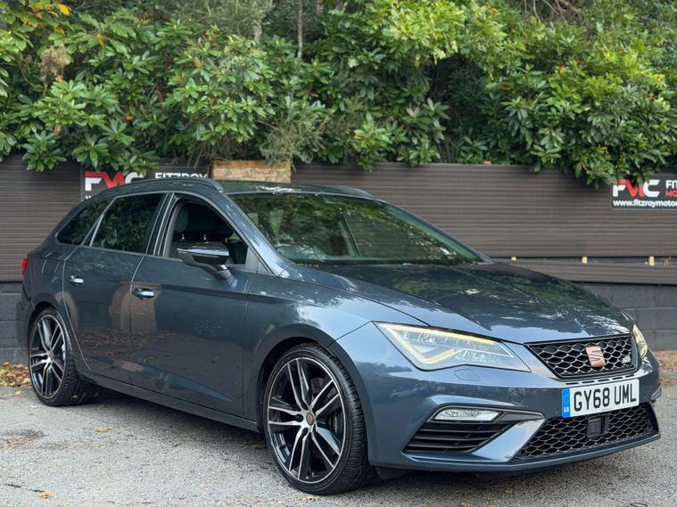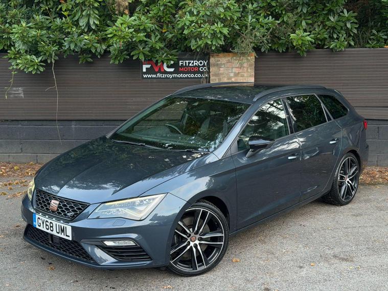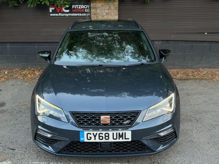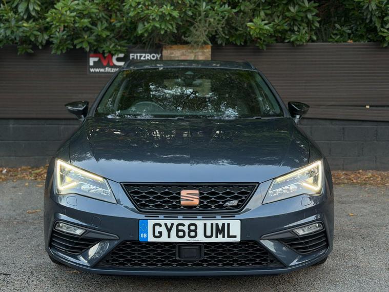 We are delighted to offer this stunning SEAT Leon Cupra 300 ST 4Drive, a rare and highly sought-after performance estate that perfectly blends power, practicality, and precision. With comprehensive service history, 2 keys, and 2 previous owners, this example has been meticulously maintained and is presented in excellent condition both inside and out.Finished in a striking dark metallic grey, this Cupra stands out with diamond-cut alloys, distinctive bronze Cupra accents, privacy glass, and black roof rails, giving it an unmistakably sporty yet refined appearance. The LED daytime running lights and aggressive Cupra styling further enhance its powerful road presence.Inside, you’ll find a premium and driver-focused cabin featuring half leather and half suede sports seats, heated front seats, and subtle ambient lighting that adds to the premium feel. The digital cockpit and multifunction steering wheel put everything you need right at your fingertips, while the Beats premium sound system provides incredible audio clarity — perfect for any drive.Technology and convenience are front and centre, with Apple CarPlay, Android Auto, Bluetooth audio, handsfree connectivity, DAB/FM/AM radio, and cruise control. The 4Drive system ensures confidence in all weather conditions, while the 2.0 TSI engine delivers an impressive 300PS, making this Cupra both exhilarating and composed to drive.This SEAT Leon Cupra 300 ST 4Drive is an exceptional all-rounder — offering estate practicality with hot-hatch performance and style.At Fitzroy Motor Co, all our vehicles are HPI clear, mechanically inspected, and supplied with a fresh 12-month MOT where required. We also offer nationwide delivery from £149 and finance options from 10.9% APR with £0 deposit available.Part exchange welcome – contact us today to arrange a viewing or test drive. Call us on 01425318542..