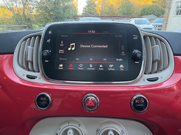 This 2017 Fiat 500 Lounge is a fantastic example, having had only two owners from new. Powered by an efficient 0.9L petrol engine, this Euro 6 compliant model boasts low CO2 emissions, making it an economical choice. Inside, you'll find a modern cabin featuring a 7in TFT instrument cluster and a 7in HD touchscreen radio complete with Bluetooth connectivity for calls and music, USB and AUX inputs, and DAB digital radio. Comfort is assured with air conditioning, and parking is made easier thanks to the rear parking sensors.The Lounge trim level enhances the exterior with stylish body coloured side rubbing strips, each proudly displaying the iconic 500 logo. The low CO2 emissions are a significant highlight, indicating that this Fiat 500 is more environmentally friendly and potentially cheaper to run than many other vehicles in its class. This combination of desirable features, excellent provenance, and efficient performance makes this Fiat 500 Lounge a compelling option for those seeking a stylish and practical city car..