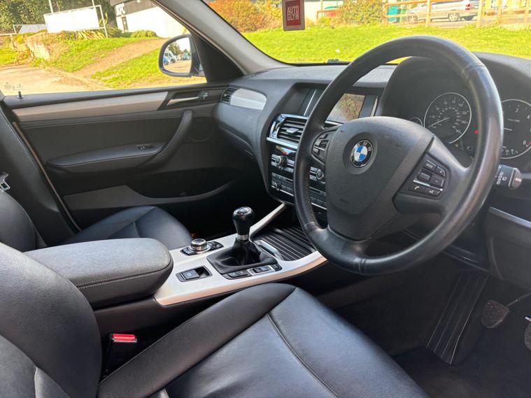 WE ARE PLEASED TO OFFER THIS HIGHLY DESIRABLE HIGH SPECIFICATION FOUR WHEEL DRIVE EURO SIX BMW X3 2.0 20d SE XDRIVE FIVE DOOR + FINISHED IN THE BEST COLOUR OF ALPINE WHITE PAINTWORK AND IS COMPLEMENTED WITH A FULL BLACK NEVADA LEATHER UPHOLSTERY + ONLY 84, 426 MILES HAS BEEN COVERED IN TOTAL + LAST OWNER SINCE JUNE 2017 + SERVICE HISTORY + JUST BEEN SERVICED + THE MOT IS TILL THE 28TH OF SEPTEMBER 2026 + EXCELLENT CONDITION THROUGHOUT AND DRIVES SUPERB + 190 BHP MODEL + FULL SE SPECIFICATION WHICH INCLUDES BMW BUSINESS SATELLITE NAVIGATION / DAB TUNER / HEATED FRONT SEATS / CRUISE CONTROL / MULTI FUNCTION LEATHER STEERING WHEEL / FULL ELECTRIC PACK / 17'' LIGHT V SPOKE ALLOY WHEELS FINISHED IN GLOSS BLACK / SUN PROTECTION GLASS / ENHANCED BLUETOOTH HANDS FREE PHONE PACK / PARKING DISTANCE CONTROL FRONT AND REAR / BMW MEDIA PACKAGE PLUS MUCH MORE + HANDBOOK PACK + ANY TRIAL OR INSPECTION IS WELCOMED + HPI CLEAR WITH CERTIFICATE + SIX MONTHS NATIONWIDE WARRANTY IS INCLUDED + THIS TRULY CHERISHED EXAMPLE MUST BE VIEWED TO BE APPRECIATED AND MUST NOT BE CONFUSED WITH LESSER EXAMPLES OF THIS POPULAR SUV FOUR WHEEL DRIVE. We have been established in Baildon for over 20 years. All our vehicles are fully inspected, prepared and valeted. We are finance specialists. Part exchange is welcome. All major credit and debits accepted. Open 7 days. Our postcode is BD177EX..