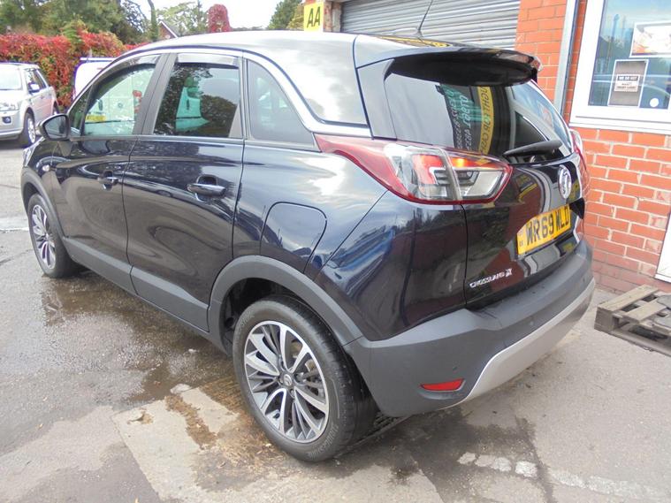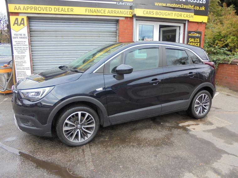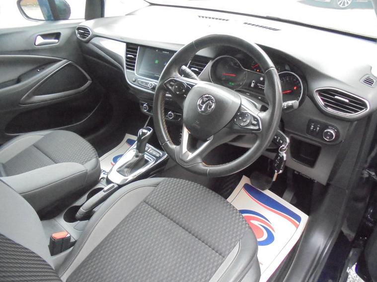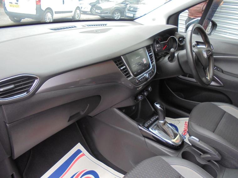 VAUXHALL CROSSLAND X 1.2 TURBO ELITE AUTOMATIC EURO 6.ONE OWNER FROM NEW IN METALLIC BLUE/BLACK WITH CONTRASTING TWO TONE CLOTH INTERIOR WITH LOW LOW MILES AND FULL VAUXHALL SERVICE HISTORY WITH NEW CAMBELT FITTED.FANTASTIC SPEC WITH SAT NAV, APPLE CARPLAY, FRONT AND REAR PARKING SENSORS, BLUETOOTH CONNECTIVITY, AIRCON, DAB RADIO AND 17 INCH DIAMOND CUT ALLOYS.STUNNING EXAMPLE THROUGHOUT.THE BEST VALUE AUTOMATIC CROSSLAND IN UK TODAY WITH MOT UNTIL OCTOBER 2026 AND FRESH SERVICE AND REPLACEMENT CAMBELT JUST DONE.12 MONTHS FREE AA BREAKDOWN COVER AND 15 MONTHS WARRANTY INCLUDED IN PRICE.FINANCE AVAILABLE P/X WELCOME..