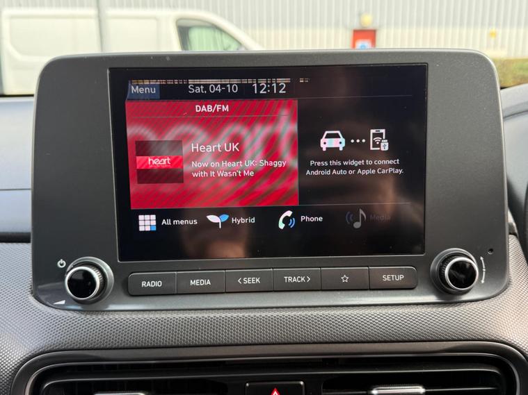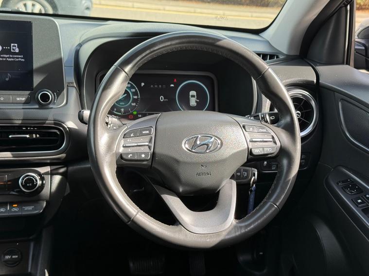 Discover this 2022 Hyundai KONA h GDi SE Connect, a smart choice for those seeking efficiency and modern convenience. This Euro 6 compliant model boasts a 1.6 litre petrol hybrid engine, offering an impressive fuel economy of 58 miles per gallon. Inside, you'll find a user friendly 8 inch touchscreen display audio system, complete with Apple CarPlay and Bluetooth connectivity for seamless phone integration. The SE Connect trim also includes automatic headlights that activate with a dusk sensor, and climate control air conditioning to ensure a comfortable journey in any weather. Parking is made easier with the integrated rear view camera.This Hyundai KONA stands out with its excellent fuel economy, achieving 58 mpg, which indicates it is more economical than many other vehicles in its class. Furthermore, its low CO2 emissions and low insurance group highlight its cost effectiveness for everyday driving. These factors combined make this KONA a sensible and appealing option for a wide range of drivers..