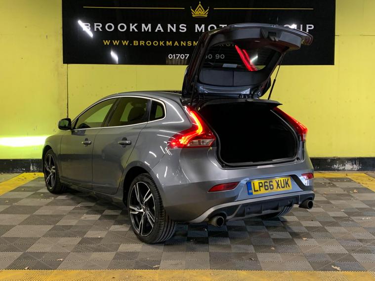 Great driving and excellent condition Volvo V40 T3 R-Design Pro Auto finished in osmium grey with contrasting cream piped black leather interior which has covered just 43k miles from new with only 1 owner. The car comes with an extensive and full service history with Volvo main dealer servicing at 7k in 2018, 14k in 2019, 22k in 2020, 25k in 2021, 30k in 2022 and at 37k in 2024 before being serviced by an independent garage at 41k in 2025 (brake fluid, front and rear pads and discs and cambelt and waterpump change).The R-Design Pro comes with a host of features including electric windows, electric mirrors, full leather interior, heated seats, dual climate control, cruise control, USB port, DAB stereo, built in bluetooth, Sat Nav, auto lights, auto wipers, rear parking sensors and multi function steering wheel.Part Exchange Welcome. 12 Month AA Cover and 3 Month Warranty Included. Finance Available..