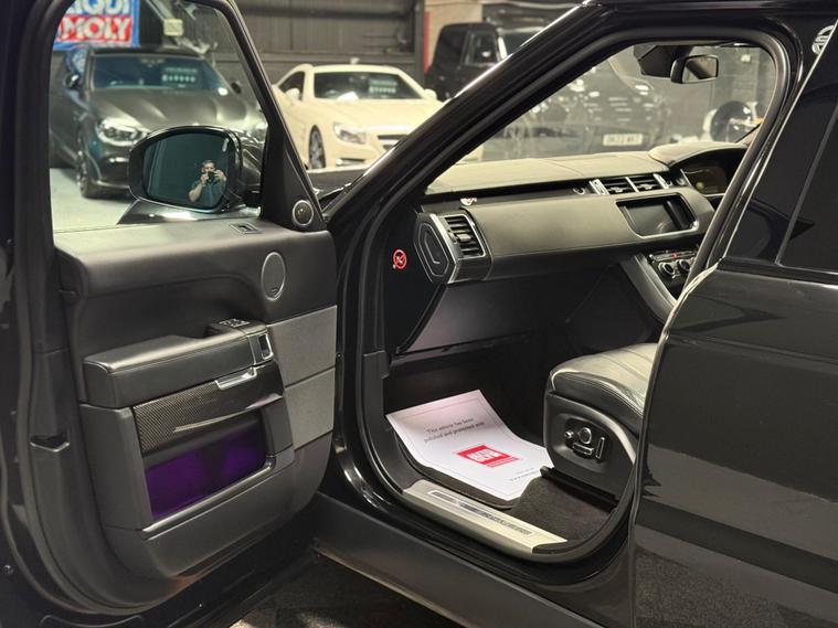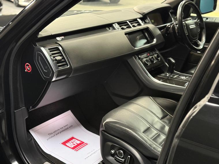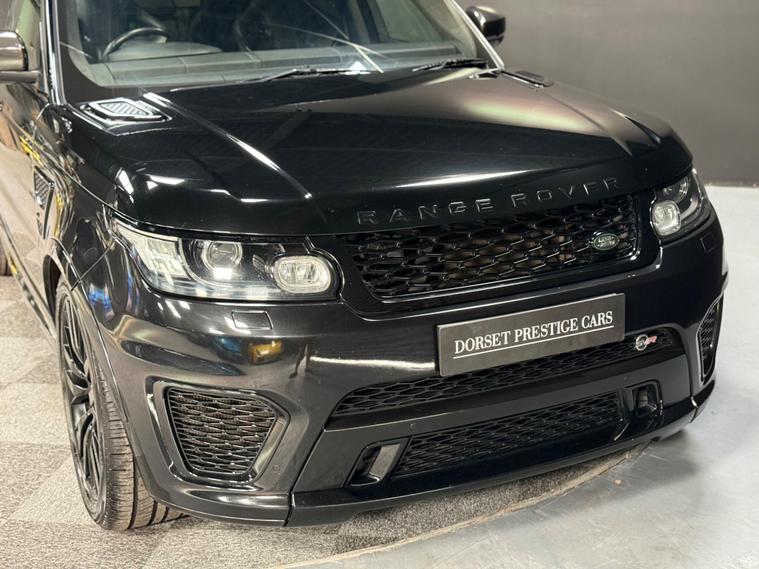 Dorset Prestige Cars are proud to present you this preproduction Range Rover Sport V8 Autobiography. Basically Landrover throughDavid keys everything at this car to make it in SVR. As you guys may know the first Svr was made August 2014 for production. This vehicle was registered in January 2014. It has the beautiful V8 supercharged engine from the SVR. The vehicle is finished in Santorini Black with Full black SVR interior, White Piping on seats, 22 inch black gloss and wheels with Pirelli tires, black pack, privacy glass, sliding panoramic glass roof with electric blind, quadruple exhaust, front and rear parking sensors, reverse camera, carbon fibre look mirrors, carbon fibre interior pack, heated steering wheel, Alcantara roof lining, centre fridge, adaptive cruise control, heated seats, electric adjust seats with memory, Meridian audio, heated rear seats, rear climate control, electric tailgate, full size spare wheel, illuminated Range Rover in door entry, ambient lighting.Service History = 07/04/2014 @ 6miles Landrover main dealer 28/05/2015 @7832 Landrover main dealer, 30/06/2016 @14822 Landrover main dealer, 07/04/2017 @20337 Landrover main dealer, 07/06/2018 @25257 Landrover main dealer, 09/07/2019 @28514 Landrover MD, 28/8/20 @32226 landrover main dealer, 23/08/2021 @38181 Landrover main dealer, 16/06/2023 @45841 Landrover, 18/01/2025 @56653 Landrover main dealer, 06/10/2025 @60163 dealer's website with two remote keys and original book pack with manuals.