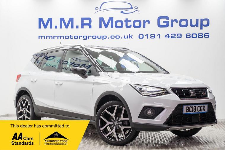 This 2018 SEAT Arona TSI EVO FR Sport is a well maintained example, offering a blend of style and practicality. Powered by a 1.5 litre Euro 6 compliant petrol engine, this FR Sport trim model is equipped with a host of desirable features. These include front fog lights with a cornering function and full LED headlights for enhanced visibility. Inside, you'll find the Connectivity Pack Plus, bringing Android Auto, Apple CarPlay, and wireless phone charging to your fingertips, alongside dual zone climate control for personalised comfort and rear parking sensors to aid manoeuvring.This SEAT Arona stands out with its impressive fuel economy, achieving a highlight of 55 miles per gallon, and benefits from low CO2 emissions. Its performance is also noteworthy, with an acceleration of 0 to 62 miles per hour in just 8.3 seconds. These figures demonstrate how this particular vehicle offers a more efficient and responsive driving experience compared to many others in its class.Please call our experienced sales team on 01914800597 for any additional specification queries, an in depth appraisal/ Video call or maybe we can help fund your new car. All our vehicles are prepared to the highest standards by our expert technicians in our fully equipped preparation centre as we're an AA approved dealer. Every car must go through a strict and thorough inspection, Items that require attention, mechanically or cosmetically are addressed prior to delivery. We offer a wide range of Finance and Warranty packages as well as fantastic trade rates for allow wheel refurbs/colour changes, window tinting and much more. Vehicles are supplied with pre delivery service, 12 months MOT, 12 Months AA breakdown cover and 6 months Auto Protect warranty that can be extended up to 24 month. All vehicles are HPI clear a full report can be supplied at point of sale. Home Delivery can be arranged throughout the UK. We welcome part exchanges and can tailor finance packages to suit you. See our latest stock on dealer's website