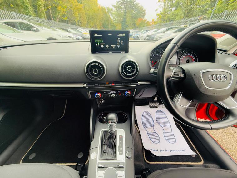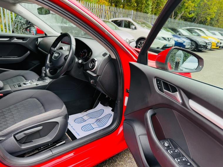 RED, FINANCE AVAILABLE, NAVIGATION SYSTEM, REVERSE CAMERA, FRONT AND REAR PARKING SENSORS, APPLE CAR PLAY, SPARE KEY, START/STOP, ONLY ONE OWNER, ULEZ COMPLIANTWARRANTED AND VARIFIABLE LOW MILEAGE.SUPERB DRIVE, VERY ECONOMICAL, ALLOY WHEELS, CLIMATE CONTROL, VERY WELL LOOKED AFTER, VERY CLEAN IN AND OUTThis 2015 Audi A3 TFSI Sport boasts exceptionally low mileage for its age, having covered just 40, 620 miles. This Euro 6 compliant 1.4 litre petrol model, presented in Sport trim, offers a refined driving experience. It comes with an MOT valid until August 2026, providing peace of mind. Inside, you'll find a 3-spoke leather multi-function sports steering wheel complete with shift paddles, allowing for manual gear selection. The car also features Bluetooth connectivity for mobile telephone preparation and dual-zone electronic climate control, ensuring comfort for all occupants.The Audi A3 TFSI Sport offers a compelling blend of performance and practicality. Its acceleration from 0 to 62mph in 9.3 seconds demonstrates its responsive nature, making it a capable performer on the road. Furthermore, the generous boot space ensures that this A3 is not only enjoyable to drive but also highly practical for everyday use, including carrying luggage or shopping. These attributes, combined with its low mileage and desirable features, set this particular Audi A3 apart from others you might find..