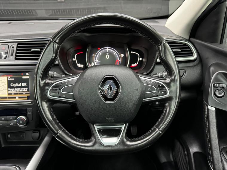 Here at Sayara Motors proud to introduce the stunning Renault Kadjar. Introducing the Renault Kadjar which is finished in a deep grey. This vehicle combines style and practicality, making it perfect for both city driving and weekend adventures. The exterior's sleek lines are complemented by a stunning panoramic glass roof, which brings an open feel to the cabin.Inside, the upgraded Bose sound system delivers crystal-clear audio. The integrated navigation system ensures you'll always find the best route, while front and rear parking sensors, a rear camera, and park assist take the stress out of maneuvering in tight spaces.Safety and convenience are paramount, with features like lane assist to help you stay on track and folding mirrors for added protection in narrow streets. Bluetooth connectivity keeps you connected on the go, and cruise control makes long journeys a breeze. This Kadjar is packed with features to enhance your driving experience.All of our vehicles are put through a Pre-Delivery Inspection which includes a fresh service and clean M.O.T for the new owners peace of mind. This specific vehicle has recently undergone a Full service..