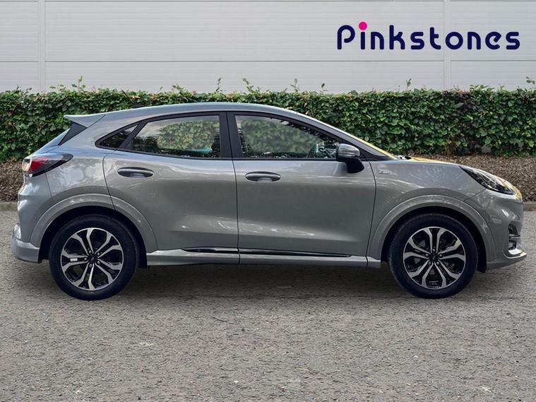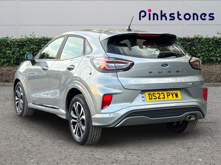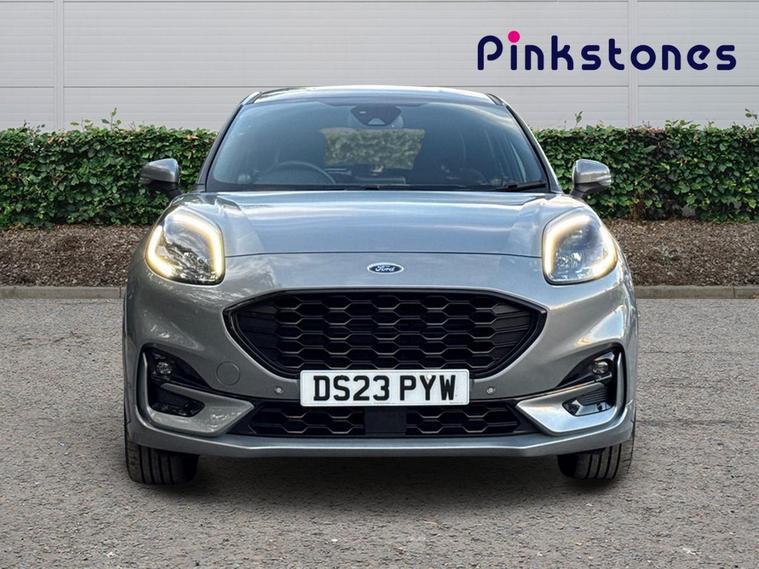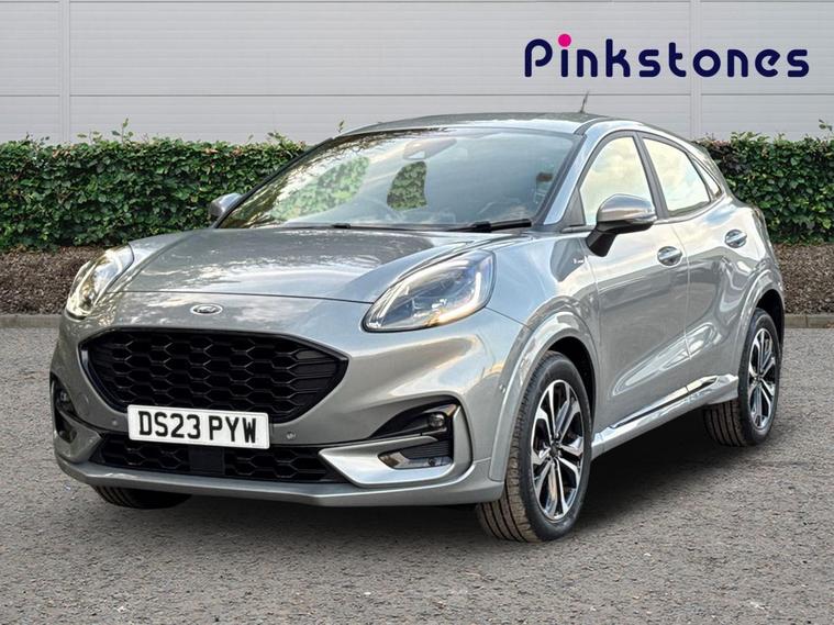 This 2023 Ford Puma T ST Line is a superb example, having had only one owner since new. This stylish compact SUV boasts a responsive 1.0L Petrol Hybrid engine, meeting the Euro 6 emission class. It comes equipped with the desirable Parking Pack, featuring front and rear parking assistance and a rear camera, alongside a Winter Pack that includes heated seats and a heated steering wheel for those colder journeys. Inside, you'll find the Ford SYNC 3 Navigation system, complete with Android Auto and Apple CarPlay integration, and Bluetooth connectivity, all managed through manual air conditioning.The Ford Puma T ST Line offers an impressive highlight fuel economy of 52 mpg, demonstrating its efficiency compared to similar vehicles. Furthermore, its low CO2 emissions contribute to a more environmentally conscious drive. This combination of advanced technology, comfort features, and excellent running costs makes this one owner 2023 Ford Puma a compelling choice..