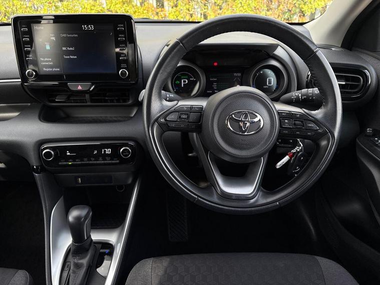 This 2022 Toyota Yaris VVT-h Design is a Toyota manufacturer approved vehicle, offering peace of mind with a 12 month warranty and a full service history, most recently serviced at 16, 700 miles on 26 October 2024. Its MOT is valid until September 2026, ensuring roadworthiness for the foreseeable future. This Euro 6 compliant model features a 1.5L Petrol Hybrid engine and comes equipped with a reversing camera for parking assistance, Toyota Safety Sense 2 including adaptive cruise control, Bluetooth connectivity, automatic headlights, and automatic air conditioning for a comfortable driving experience.The Yaris VVT-h Design stands out with its impressive fuel economy, achieving an outstanding 69 mpg, which highlights its efficiency compared to similar vehicles. Its low CO2 emissions further contribute to its economical and environmentally conscious performance, making it a sensible choice for drivers seeking both practicality and cost savings..