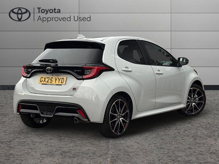 Boasting an incredibly low mileage of just 1634 miles for its 2025 registration, this Toyota Yaris VVT-h GR SPORT represents a superb example of a well cared for vehicle. As a Toyota manufacturer approved model, it comes with the reassurance of a 29 month warranty and an MOT valid until March 2028, ensuring peace of mind for its next owner. This single owner vehicle features the sporty GR SPORT trim and is powered by an efficient 1.5L Petrol Hybrid engine, meeting Euro 6 emission standards and contributing to its low CO2 emissions.The driving experience is enhanced by a suite of notable features designed for comfort and convenience. These include a comprehensive Safety Pack with Blind Spot Assistance and front and rear parking sensors, Dual-Zone Automatic Air Conditioning for personalised cabin comfort, and Smart Entry with Push Start for effortless access and ignition. You can even pre-condition the cabin temperature remotely using the MyT app. The Yaris GR SPORT also offers responsive performance, accelerating from 0-62mph in a brisk 9.2 seconds, a figure that highlights its agility compared to many other vehicles in its class..