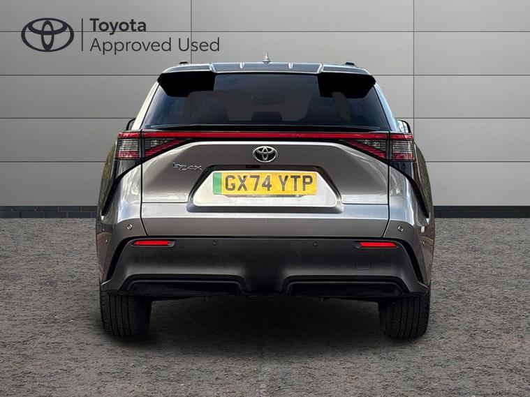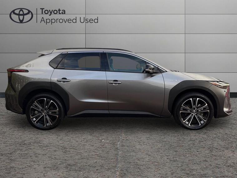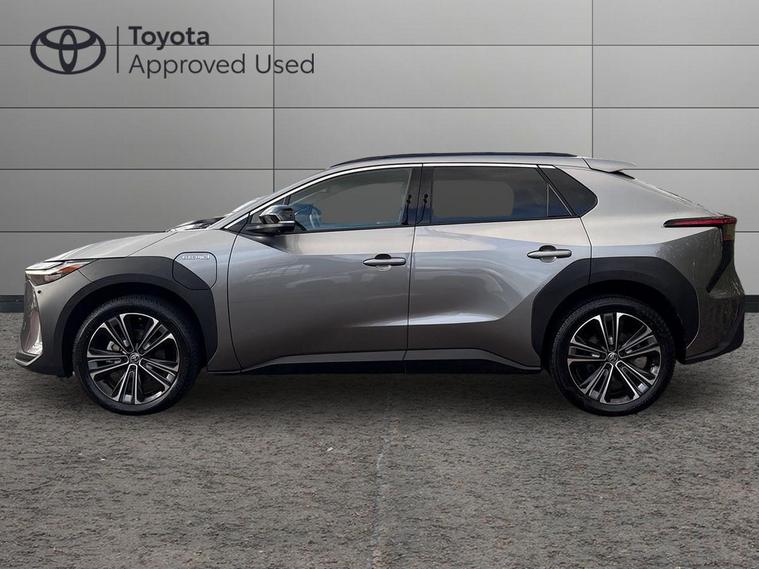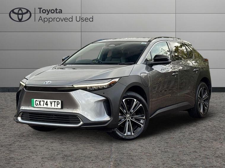 This 2024 Toyota bZ4X Vision is a Toyota manufacturer approved electric vehicle with a full dealership service history, having only had one owner and its last service completed on 13 January 2025 at 9, 523 miles. This Vision trim model boasts a 71 kWh battery offering a maximum range of 278 miles, with a full charge at home taking approximately 9 hours and 10 minutes using a 7kW charger. For faster charging, it can reach 80% capacity in just 34 minutes from empty at a public charging station. The MOT is valid until September 2027, and the vehicle comes with an 18 month warranty for your peace of mind.The Toyota bZ4X Vision is equipped with a range of notable features designed to enhance your driving experience. These include a heated steering wheel and heated driver and front passenger seats for comfort in all conditions. Parking is made easier with the 360 Panoramic View Monitor, providing a comprehensive view around the vehicle. For effortless journeys, Adaptive Cruise Control is conveniently located on the steering wheel. The 12.3 inch HD Toyota Smart Connect multimedia system offers seamless wireless smartphone integration with Apple CarPlay and Android Auto, along with Go Navigation, setting this bZ4X apart from other electric vehicles..