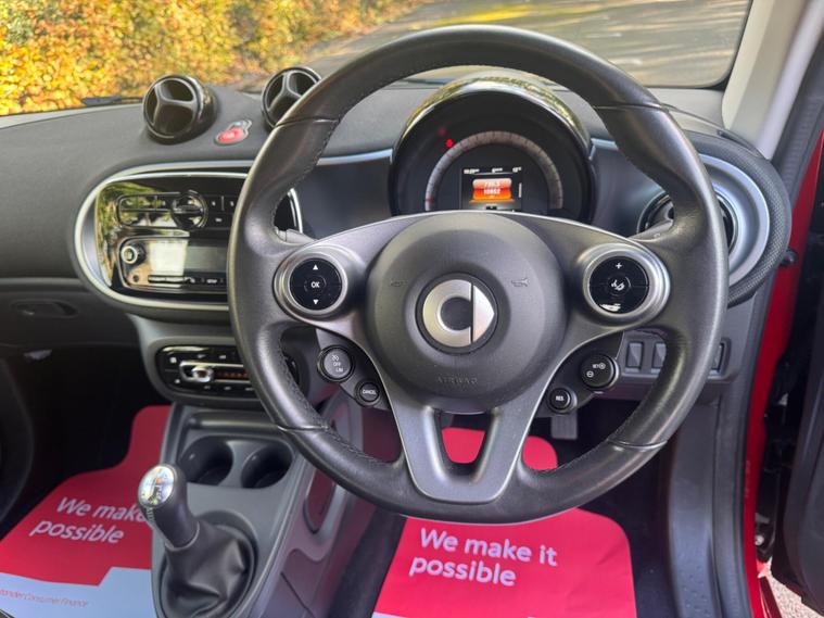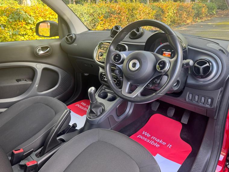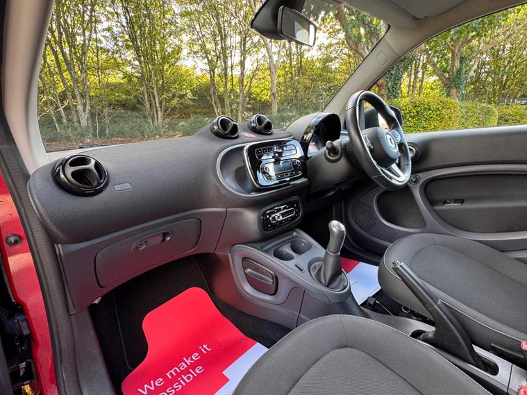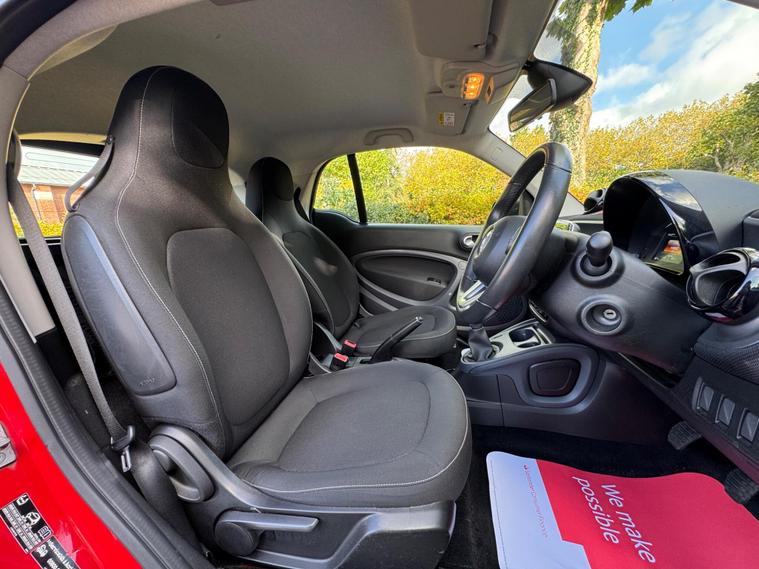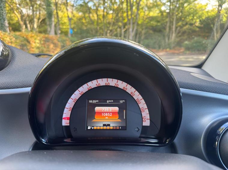 A joy to drive, stunning colour combination & 2 keys. It has just been serviced and has a recent MOT with no advisories. Ready to go.  Low mileage of just 10, 700 miles, a testament to its careful ownership. This Euro 6 compliant 1.0L petrol model, with only two previous owners, features the striking Tridion Safety Cell finished in vibrant Jupiter Red Solid Paint. Inside, you'll find the Comfort Package and Automatic Climate Control, ensuring a pleasant driving experience in all conditions.This Smart Fortwo Passion offers impressive efficiency, achieving an outstanding 57 miles per gallon, which is significantly better than many other vehicles in its class. Its low CO2 emissions further contribute to its economical and environmentally conscious performance, making it a smart choice for city driving and beyond..