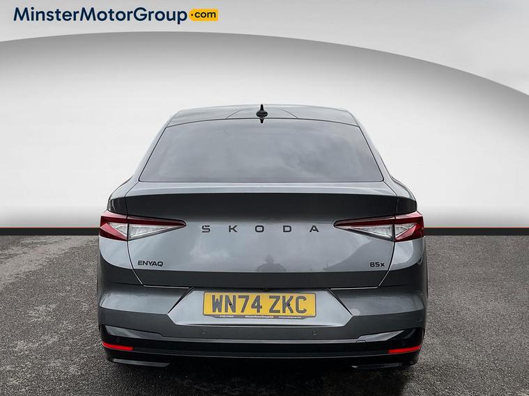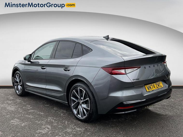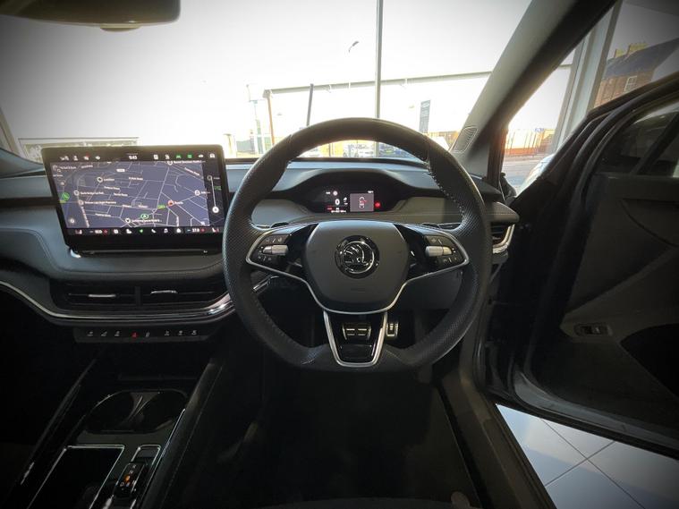 This 2024 Skoda Enyaq 85x SportLine Plus features a substantial 82 kWh battery, providing a maximum range of 333 miles when new. Charging at home with a 7kW charger will take approximately 12 hours and 13 minutes, while rapid public charging can replenish the battery from empty to 80% in just 28 minutes. This four wheel drive model also comes equipped with Bluetooth connectivity for seamless integration of your devices. The Skoda Enyaq 85x SportLine Plus offers impressive performance and practicality. Its acceleration is a notable highlight, achieving 0 to 60 miles per hour in a swift 6.4 seconds, demonstrating its dynamic capability. Furthermore, this model offers generous boot space, making it an excellent choice for families or those who require ample storage. These features collectively position the Enyaq 85x SportLine Plus as a compelling option within its class, combining electric efficiency with engaging driving dynamics and everyday usability..