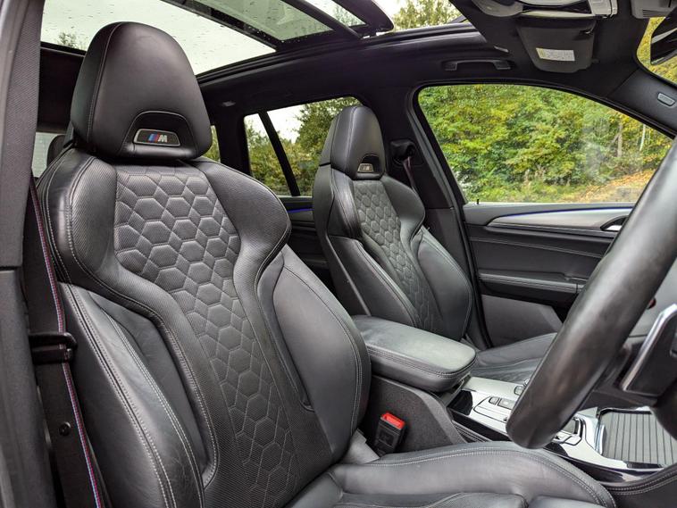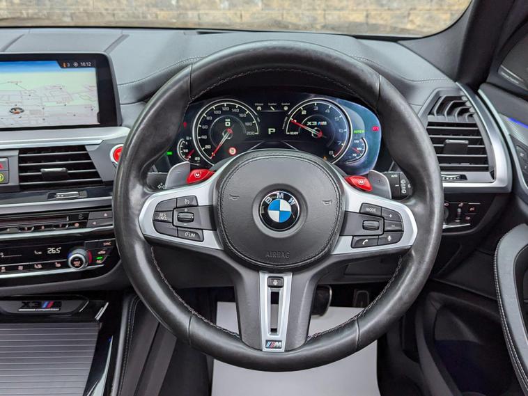 This 2019 BMW X3 M i Competition is presented with a clear vehicle history check, offering peace of mind for its next owner. Under the bonnet, a powerful 3.0 litre petrol engine paired with a four wheel drive drivetrain ensures dynamic performance. This Euro 6 compliant model boasts a substantial towing weight of 2400 kg, making it a versatile choice. Inside, you'll find a host of premium features designed for comfort and convenience, including a Panoramic glass sunroof, enhanced Bluetooth telephone preparation with Wireless charging, Automatic air conditioning, Heated front and rear outer seats, Heated steering wheel, Harman Kardon speaker system, and a Head Up Display.The X3 M i Competition truly excels with its impressive acceleration, achieving 0-62mph in a mere 4.1 seconds, a figure that sets it apart from many other vehicles in its class. This rapid acceleration is a testament to the engineering prowess of the M division. Furthermore, the generous boot space provides ample room for luggage or shopping, enhancing its practicality for everyday use and longer journeys..