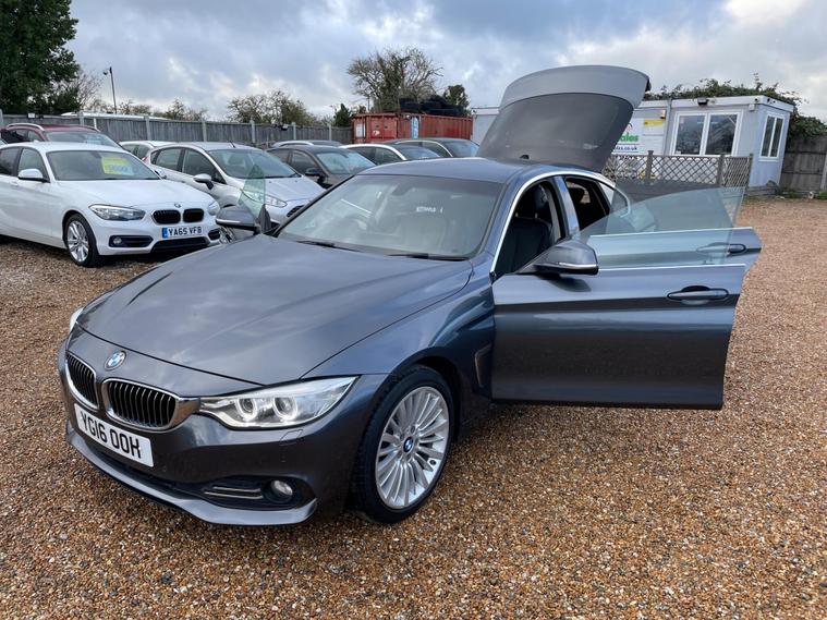 FREE 12 MONTHS AA BREAKDOWN COVER, ZERO DEPOSIT FINANCE AVAIL, 6 MONTHS NATIONWIDE WARRANTY, Full service history, Hpi clear, all previous Mot's avail. We are located in CANVEY ISLAND, ESSEX SS8 0QDThis 2016 BMW 4 Series Gran Coupe 420d Luxury boasts a clear vehicle history, offering peace of mind for its next owner. This stylish four door coupe features a powerful yet efficient 2.0L diesel engine paired with BMW's renowned xDrive four wheel drive system, ensuring confident handling in all conditions. As a Euro 6 compliant vehicle, it meets stringent emission standards. The Luxury trim level enhances the driving experience with premium features such as front and rear Park Distance Control for effortless manoeuvring, and heated front seats for comfort during colder journeys.The 420d Gran Coupe excels with its impressive performance, accelerating from 0 to 62mph in a brisk 7.4 seconds, demonstrating its dynamic capabilities. This acceleration figure highlights its superior responsiveness compared to many similar vehicles. Further enhancing its practicality, this model offers generous boot space, making it ideal for both daily errands and longer trips. The enhanced Bluetooth telephone preparation with USB audio interface and voice control, along with automatic two zone climate control, ensures connectivity and comfort are always at your fingertips..