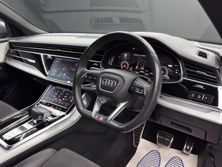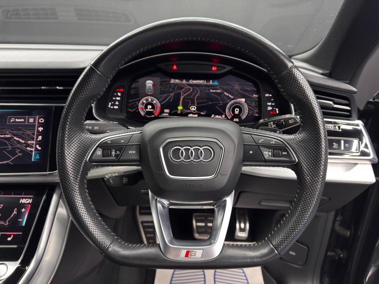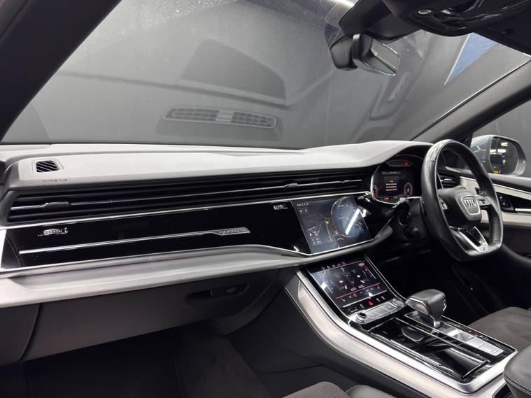 Here at Motor Gurus we are delighted to offer an Audi Q8 3.0 TDI V6 50 S line Tiptronic quattro. This vehicle is in immaculate condition inside and out. This specific vehicle is finished in a METALLIC GREY and is contrasted by a BLACK LEATHER/SUEDE interior. This vehicle comes included with: FRONT AND REAR PARKING SENSORS, REAR PARKING CAMERA, PRIVACY GLASS, AIR SUSPENSION, ELECTRIC BOOT LID, SPORT SEATS, FRONT ELECTRIC SEATS, DRIVER MEMORY SEAT, HEATED WING MIRRORS, PERFORATED LEATHER GRIPPED STEERING WHEEL, CRUISE CONTROL, DIGITAL DASHBOARD, WIRELESS PHONE CHARGING, AUTO HOLD BRAKE, KEYLESS START, TWIN CUPHOLDERS, FRONT HEATED SEATS, 3 ZONE CLIMATE CONTROL, SAT NAVIGATION, BLUETOOTH AUDIO, TELEPHONE CONNECTIVITY, DAB RADIO, APPLE CARPLAY, DRIVER ASSIST, DRIVING MODES, TYRE PRESSURE MONITORING AND MUCH MORE! Our Audi Q8 3.0 TDI V6 50 S line Tiptronic quattro has come to us with 2 KEYS and will also come provided with a 12 MONTH MOT as well as a FRESH OIL SERVICE before it leaves our premises (OTR)..
