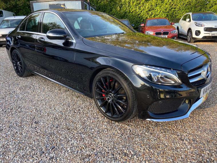 A Lovely Mercedes C220 AMG LINE PREMIUM PLUS Automatic With Fantastic Specification Including Full Glass Panoramic Sunroof, Satellite Navigation, Bluetooth Telephone, Full Artico Leather Seats, Heated Front Seats, Electric Front Seats With Drivers Memory Function, Multi Function Steering Wheel, Cruise Control, Climte Control, Electric Heated And Folding Mirrors, DAB Radio With USB Ports, Burmester Speaker System, Electric Boot Lid, Remote Central Locking With Two Keys, 19'' Multi Spoke Alloy Wheels And Lots More, The Car Has A Documented Service History And Has Just Been Serviced An MOT Until October 2026 With No Advisories And Will Come With A Comprehensive Nationwide Six Months Warranty, In Metallic Obsidian Black With Full Black Artico Leather Seats.