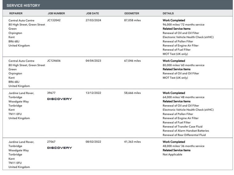Full service history