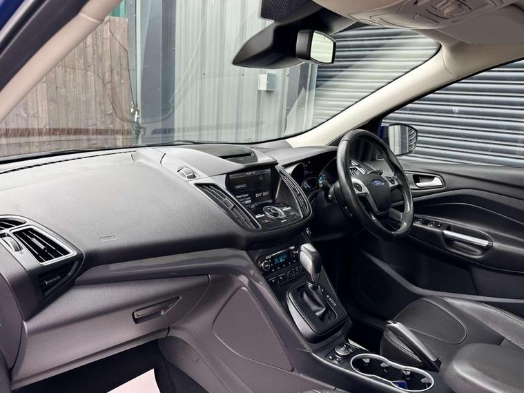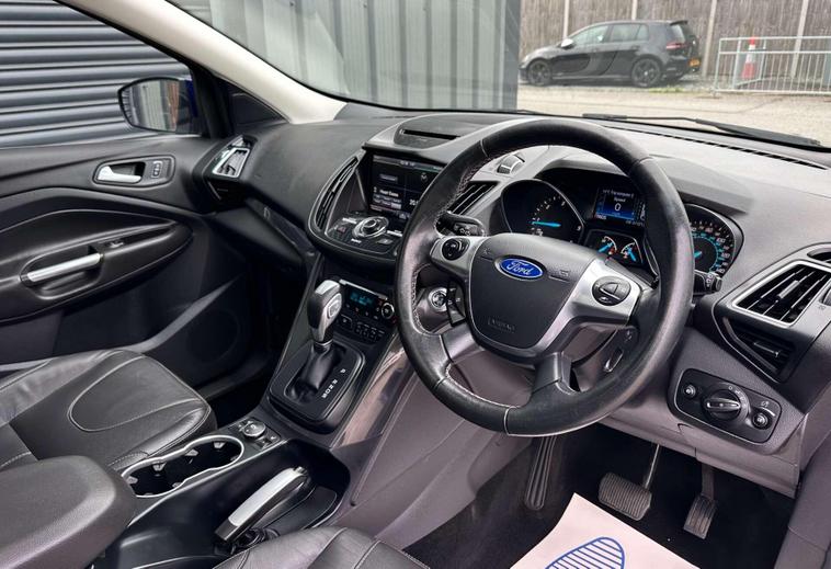 Ford Kuga 1.5 Kuga Titanium Sport 4x4 Auto 4WD 5dr ULEZ FREE. Spirit blue metallic with a full black leather interior and contrast white stitching.18'' alloys, cambelt/water pump replacement Sep2025, rear picnic tables, detachable towbar, privacy glass, chrome roof rails, panoramic glass roof, satellite navigation, 8'' touchscreen, AUX/USB connectivity, CD player, DAB radio, cruise control, leather multifunction steering wheel, front/rear parking sensors, rear camera, park assist, electric heated door mirrors, heated washer jets, daytime running lights, dual zone climate control, heated front sports seats, automatic wipers and headlights. Here at Saracen Motor Group we have been awarded AA Platinum dealership recognition along with being nominated for best customer service by Autotrader for 21, 22, 23, 24 & 2025. We are a 5 star dealership with only 5 star reviews across all internet platforms including Autotrader and have been regarded as one of the best dealerships to buy from in the UK. Our preparation inspected each vehicle to the highest level possible for it’s age and mileage. You can rest assure your next car has been cared for to the highest standard. Service history, V5 and the HPI certificate will all be present on viewing and collection. With our location based in Battlesbridge, Essex you can enjoy a haggle-free buying experience where you can drive away the same day if prior arranged, additional fees apply please see our website for details..