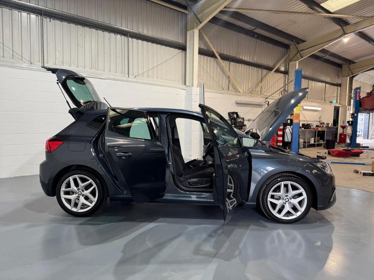 We are pleased to present this sporty SEAT Ibiza 1.0 TSI FR, finished in striking Magnetic Grey Metallic. Combining dynamic styling, practical efficiency, and modern technology, the Ibiza FR delivers a fun and engaging driving experience.Under the bonnet, the 1.0-litre TSI engine offers responsive performance while remaining economical, making it ideal for both city streets and longer journeys. The FR trim adds a sporty edge with its distinctive design cues and refined interior detailing.Inside, the cabin features comfortable Nora FR cloth seats, creating a stylish and supportive environment for driver and passengers alike. Practical features include Cruise Control for effortless motorway driving and Apple CarPlay, allowing seamless smartphone integration and easy access to music, navigation, and apps.With its modern looks, sporty character, and tech-savvy interior, this SEAT Ibiza FR is a versatile and appealing choice for anyone seeking a compact hatchback that combines style, efficiency, and convenience..