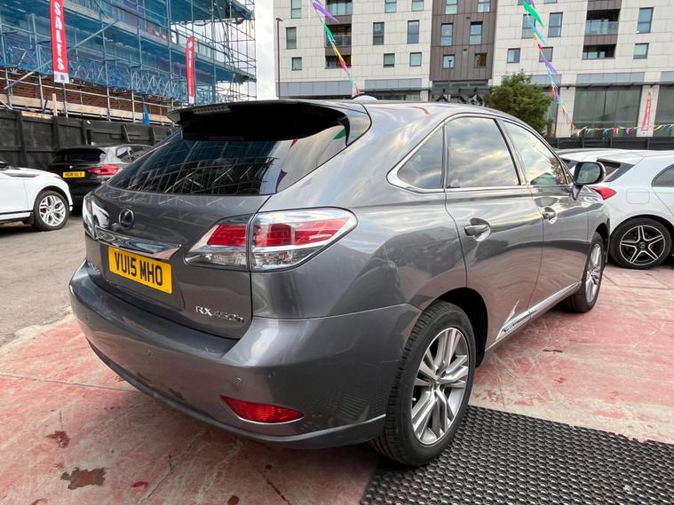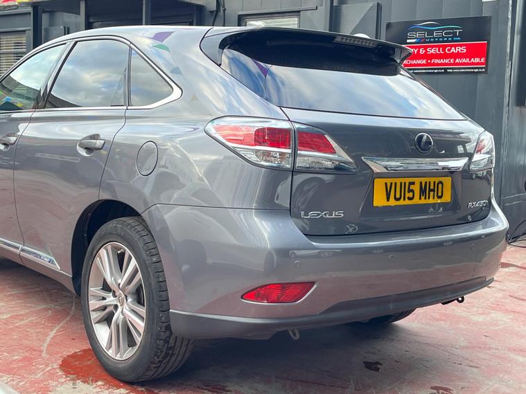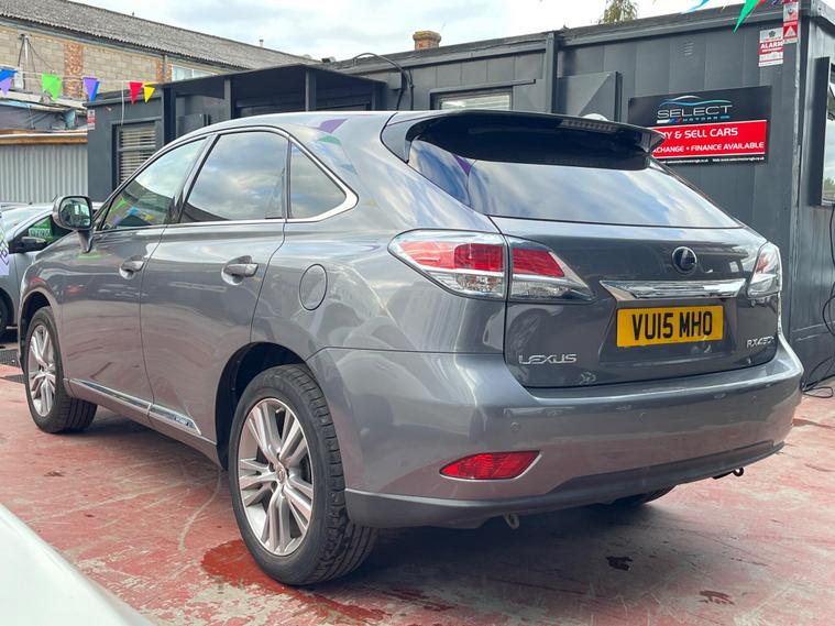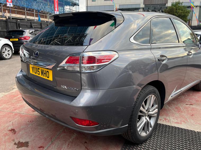 SELECT MOTORS (GB) IS DELIGHTED TO OFFER YOU THIS AMAZING LEXUS RX450H V6 ADVANCE 5DR IN GREY COLOUR. THIS VEHICLE HAS A HUGE SPECIFICATION WHICH INCLUDES THE FOLLOWING; SATELLITE NAVIGATION SYSTEM, REAR VIEW CAMERA INCLUDING FRONT VIEW AND PARKING AND REAR PARKING DISTANCE CONTROL SENSORS, PAN ROOF, BLUETOOTH CONNECTIVITY FOR PHONE AND MEDIA, DAB-FM/AM RADIO, ELECTRICALLY ADJUSTABLE FRONT HEATED SEATS WITH DRIVER MEMORY FUNCTION, CRUISE CONTROL, ELECTRONIC PARKING BRAKE, DUAL ZONE CLIMATE CONTROL AIR CONDITIONING SYSTEM, ELECTRIC POWERED TAILGATE, TYRE PRESSURE WARNING SYSTEM AND MANY MORE. THIS VEHICLE IS ULEZ EXEMPT. WE ARE OFFERING NATIONWIDE DELIVERY ON ALL VEHICLE (PLEASE GET IN TOUCH DIRECTLY FOR DETAILS). WE CAN ALSO CONDUCT VIRTUAL VIEWINGS AND ACCOMMODATE ANY REQUESTS YOU MAY HAVE. ALL OUR ADVERTISED STOCK IS TEST-DRIVEN, INSPECTED BY OUR MECHANIC TO MAKE SURE OUR CUSTOMERS DRIVE AWAY WITH THE BEST QUALITY CARS. WE CAN PROVIDE A VIDEO WALK AROUND THIS VEHICLE UPON REQUEST., ALL OF OUR VEHICLES ARE SUPPLIED WITH A 3 MONTHS WARRANTY WITH EXTENDED OPTION. 12 MONTHS FREE AA BREAKDOWN COVER. FINANCE AVAILABLE..