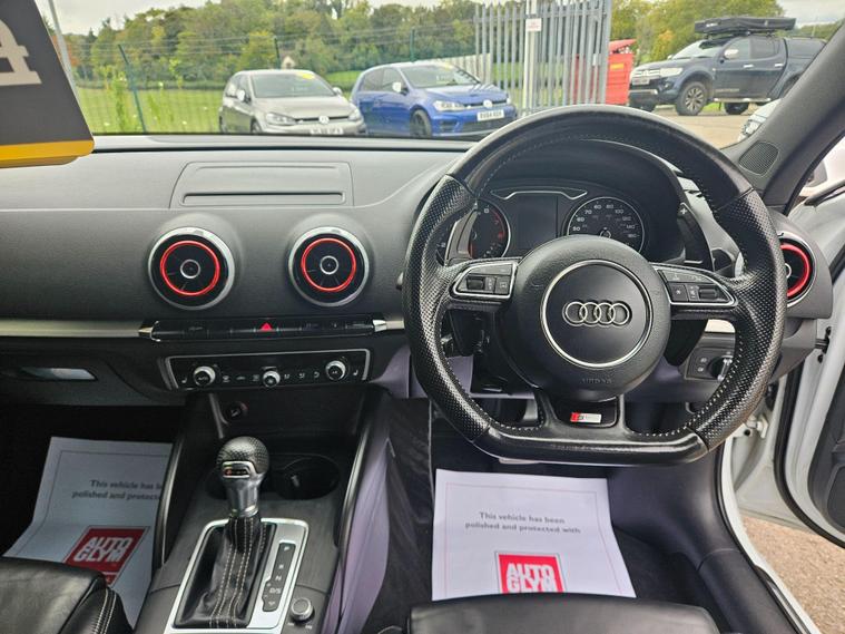 This 2014 Audi A3 TFSI S line presents an exceptional ownership proposition with its full service history and an MOT valid until September 2026. This particular model, a 1.8 litre petrol variant, boasts a Euro 6 emission class and has covered a low mileage of just 71, 000 miles for its age. It comes with a 3 month warranty for your peace of mind. Notable features include Bluetooth audio streaming and a mobile telephone preparation Bluetooth interface, allowing for seamless connectivity. For comfort, it offers dual zone electronic climate control, ensuring a pleasant cabin temperature for all occupants, and Bi Xenon Plus headlights for enhanced visibility.The Audi A3 TFSI S line stands out with several key advantages. Its impressive fuel economy of 50 mpg means fewer trips to the petrol station, making it an economical choice. The low insurance group further contributes to its affordability. With low CO2 emissions, it is also a more environmentally conscious option. For those who appreciate performance, the acceleration from 0 to 62 mph in just 7.3 seconds demonstrates its responsive nature. The last service was completed at 63, 571 miles, indicating diligent maintenance.It comes with Satellite Navigation, Full black leather interior, Alloy wheels, Dab stereo system, Bluetooth, Heated seats, Multi function steering wheel, Cruise control, Stop/start technology and remote central locking with 2 x keys.This vehicle boasts full service history with services carried out at 7475 miles, 13775 miles, 24220 miles, 25011 miles, 34900 miles, 45234 miles, 51147 miles, 63571 miles and will be freshly serviced at point of sale it also has MOT until September 2026.It is presented in excellent condition throughout and drives superb. Viewing, test drive and inspection welcome.Finance available..