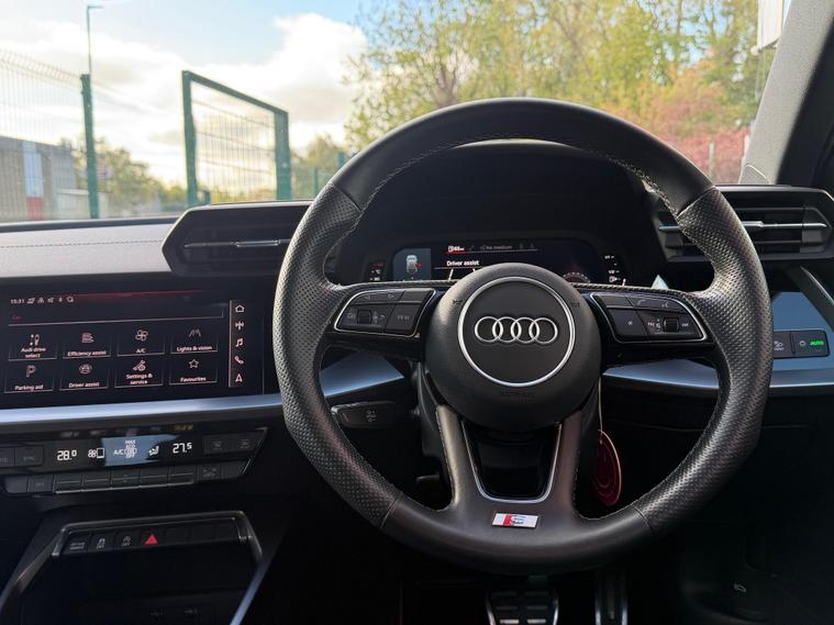 This 2020 Audi A3 TFSI S line boasts a full service history, This stylish A3 is equipped with a 1.5 litre petrol engine and meets Euro 6 emissions standards. For your peace of mind, it comes with a 6 month warranty. Notable features include LED headlights with dynamic rear indicators, dual zone electronic climate control, and a light and rain sensor for automatic headlight activation. You'll also find rear parking sensors to aid manoeuvring and a Bluetooth with wireless Apple car play interface for seamless connectivity. Experience impressive performance with this Audi A3, capable of accelerating from 0 to 62mph in just 8.4 seconds, a testament to its dynamic capabilities. The generous boot space offers practicality for all your needs, making it a versatile choice. These highlights demonstrate how this A3 stands out from other vehicles in its class, offering a superior combination of performance, technology, and convenience.Part exchange welcome and finance can be arranged. Viewing by appointment only.
