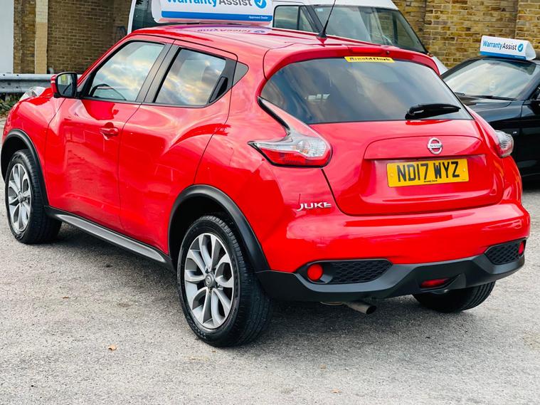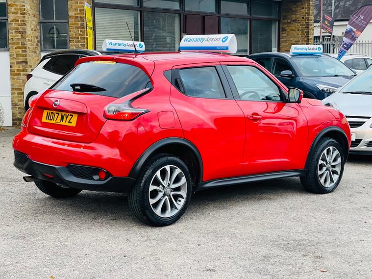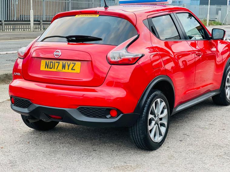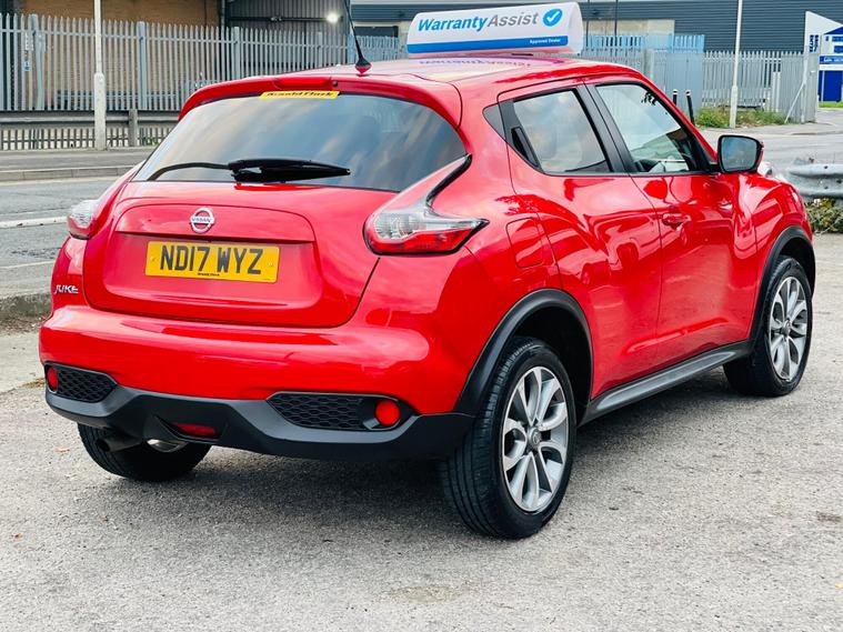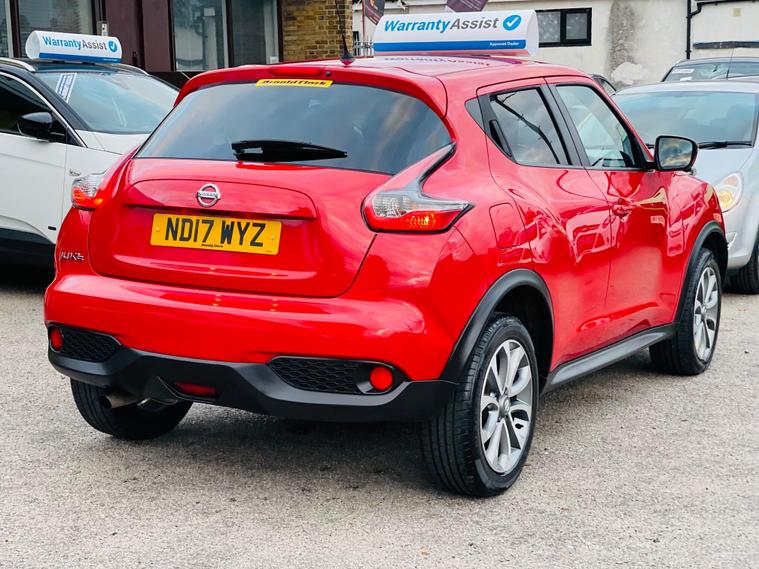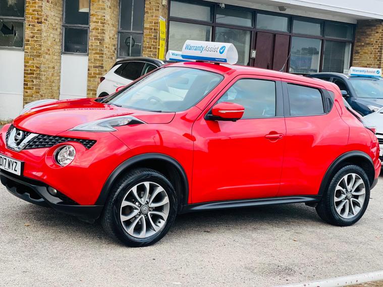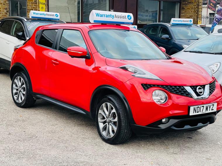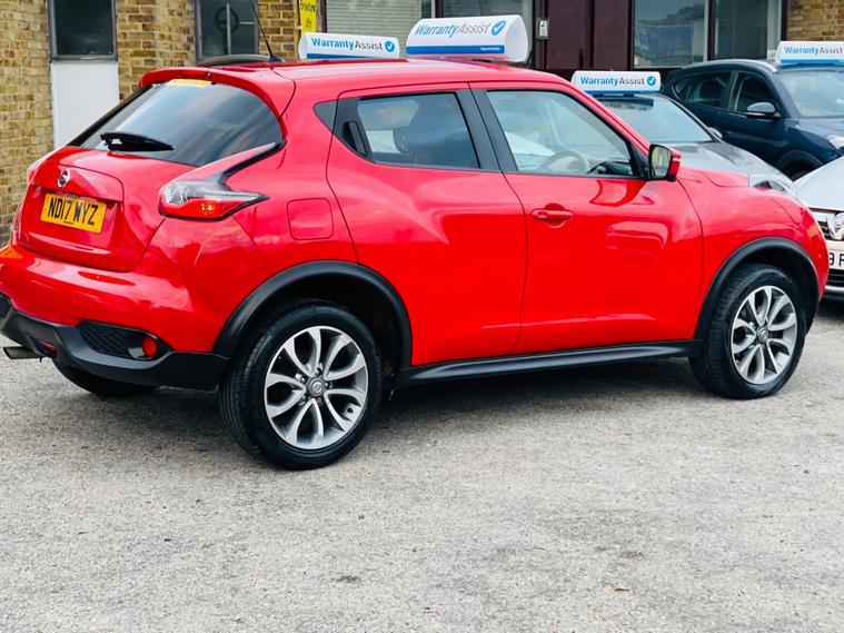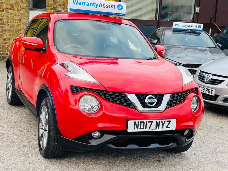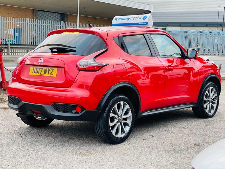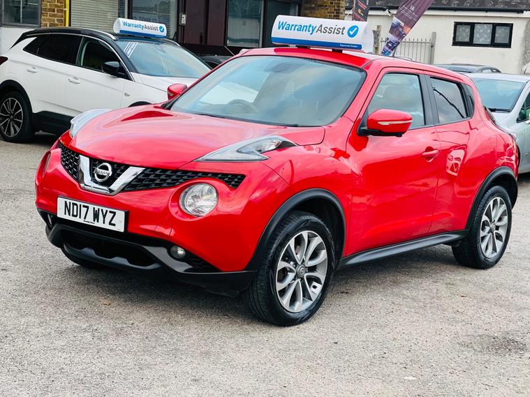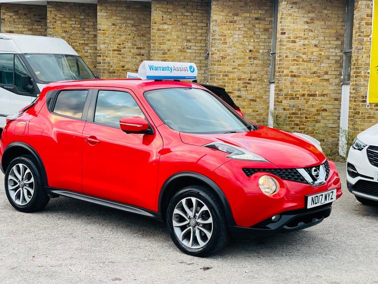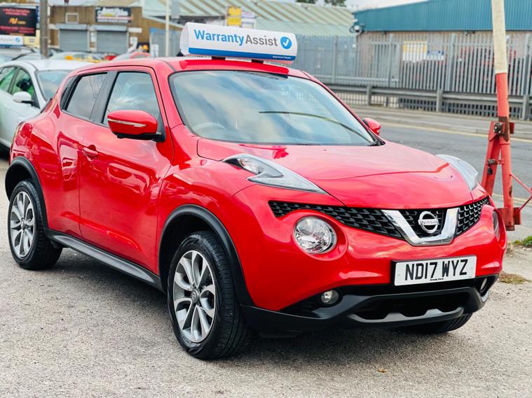 Hunter & Sons are pleased to offer..This 2017 Nissan Juke Tekna is a great choice for those seeking a stylish and practical compact SUV. ? FULLY HPi CLEAR?? Car has been well loved & looked after.. CLEAN HISTORY.. NEVER FAILED MOT IN ITS LIFE NOT EVEN AN ADVISORY?? LOVELY IN RED .. SPOTLESS BODYWORK?Powered by a 1.6 litre petrol engine and meeting Euro 6 emissions standards, this Tekna model offers a compelling blend of performance and efficiency, achieving an impressive 47 miles per gallon. You'll appreciate the convenience of the Intelligent Key with Start Push Button, allowing for keyless entry and ignition. The comprehensive Safety Pack includes Blind Spot Assistance and a 360 degree camera system, providing enhanced awareness and confidence when parking and manoeuvring. Inside, the front seats are heated for your comfort, and Bluetooth integration makes handsfree calls and music streaming simple. A colour reversing camera further aids parking.✅??FULL SERVICE HISTORY??✅✅??JUST HAD A FRESH SERVICE??✅Comes with ;✅? LONG MOT?✅✅?2 KEYS?✅✅?3 MONTHS WARRANTY?✅✅?5DAYS AA DRIVEAWAY INSURANCE ?✅✅?12 MONTHS AA BREAKDOWN COVER?✅This Nissan Juke Tekna stands out with its low insurance group, making it an economical choice for many drivers. The combination of its efficient 47 mpg fuel economy and the advanced safety features, such as the 360 degree camera and Blind Spot Assistance, clearly demonstrate its advantages over other vehicles in its class. This Tekna variant offers a well equipped and user friendly driving experience, perfect for navigating both city streets and longer journeys..