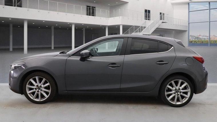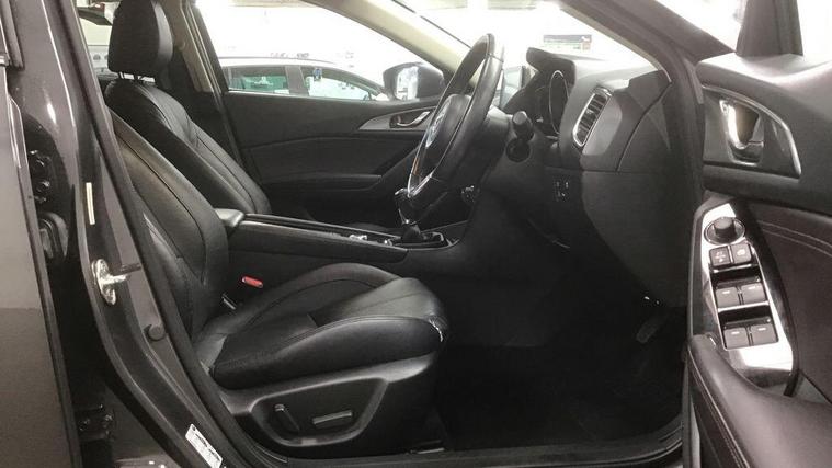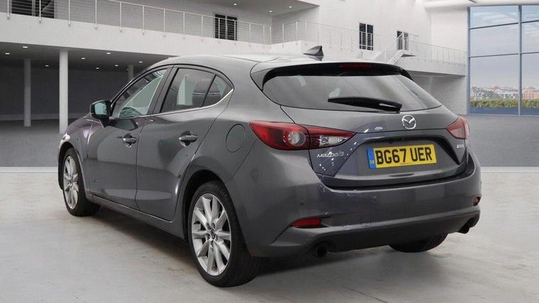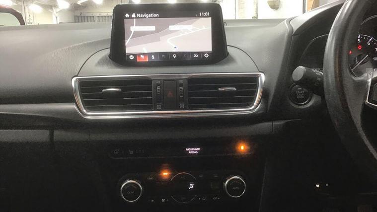 This 2017 Mazda3 SKYACTIV-G Sport Nav has been cherished by just one owner since new, offering a superb example of this popular model. Powered by a responsive 2.0 litre petrol engine and meeting Euro 6 emissions standards, this Sport Nav trim level comes equipped with a comprehensive Safety Pack, including Blind Spot Assistance and LED headlights for enhanced visibility. Inside, you'll find luxurious black leather upholstery, a colour active driving display with a head up display, and an impressive AM-FM-DAB radio with a single CD player and MP3 compatibility, all feeding into a premium Bose Centrepoint Surround sound system with nine speakers. Parking is made simple with front and rear parking sensors.This Mazda3 stands out with its impressive fuel economy, achieving a remarkable 55 miles per gallon, and benefits from a low insurance group, making it an economical choice for many drivers. Its acceleration is brisk, reaching 0-62mph in just 8.9 seconds, demonstrating a pleasing blend of performance and efficiency. Furthermore, the generous boot space ensures practicality for everyday needs and longer journeys, highlighting how this vehicle offers a superior experience compared to other similar cars on the market..
