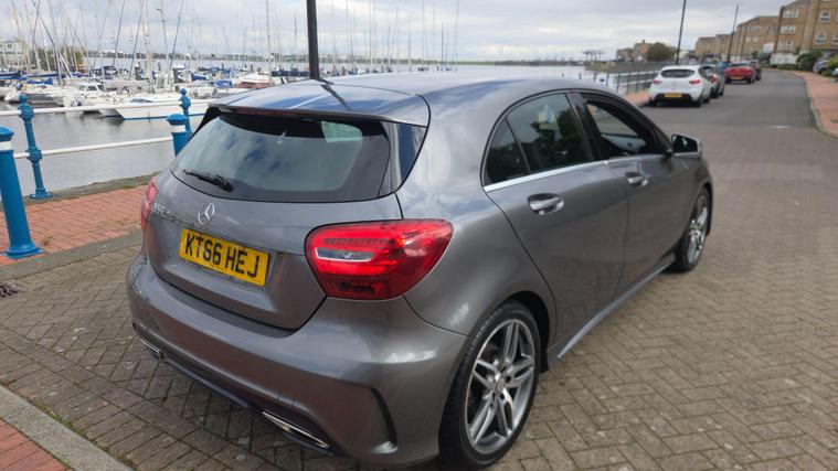 REAR CAM, NAV, CRUISE, ULEZ.12 months warranty.Excellent condition inside and out. Alloys are in excellent condition Mercedes-Benz A Class 1.6 A160 AMG Line Euro 6 (s/s) 5dr , two keys full service history, excellent condition inside and out very low miles , This 2017 Mercedes Benz A Class A160 AMG Line presents a compelling proposition with its remarkably low mileage of just 48, 303 miles for its age and a history of only two owners. Finished in the stylish AMG Line trim, this Euro 6 compliant 1.6 litre petrol model benefits from the desirable Night Package, enhancing its visual appeal. Inside, you'll find the convenience of the Garmin Map Pilot Navigation System to guide your journeys, and the THERMOTRONIC luxury automatic climate control with two zones ensures optimal comfort for all occupants. The Headlamp Assist automatically activates the headlights, while the 180 degree reversing camera with parking guidelines offers excellent visibility when manoeuvring.This A Class offers several advantages over similar vehicles. Its acceleration from 0 to 62mph in 10.6 seconds provides a capable performance for everyday driving. Furthermore, its placement in a low insurance group makes it an economical choice for many drivers. The generous boot space ensures practicality for shopping trips or luggage, making it a versatile option for various needs.HPI CLEAR NEVER BEEN INVOLVED IN ANY ACCIDENTS TO BODYWORK. This vehicle meets the ULEZ emissions standards.The vehicle is kept In our brand new showroom on Penarth Rd, Cardiff CF11 8TU, so please call to arrange viewings.Full V5 documentation.