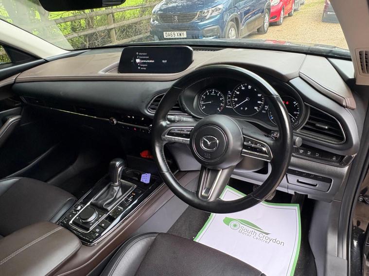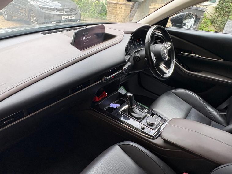 This 2022 Mazda CX-30 e-SKYACTIV G GT Sport is a superb example of a well maintained vehicle. This stylish SUV boasts a 2.0 litre petrol engine and meets Euro 6 emissions standards. Inside, you'll find a premium experience with dual zone climate controlled air conditioning, complete with rear air vents, and a sophisticated AM-FM-DAB radio system featuring a 12 speaker Bose surround sound system. For convenience and safety, it includes front and rear parking sensors, a reversing camera, and smart keyless entry.The Mazda CX-30 GT Sport offers an attractive proposition for discerning drivers. Its impressive fuel economy of 45 miles per gallon and low CO2 emissions demonstrate its efficiency, making it a more economical choice compared to many other vehicles in its class. Furthermore, its low insurance group rating indicates that running costs are kept to a minimum, further enhancing its appeal as a practical and desirable option..