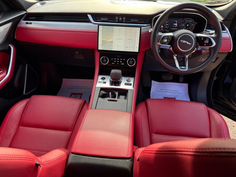 This 2021 Jaguar F PACE D165 R Dynamic S boasts a full service history, with its last service completed at 71, 141 miles, offering excellent provenance. This four wheel drive model is powered by a 2.0 litre diesel engine and meets Euro 6 emissions standards. It features a Black Exterior Pack and striking Red Brake Calipers, complemented by an R Dynamic S trim. Inside, you'll find the Interactive Driver Display and a Head Up Display, part of the Technology Pack which also includes wireless phone charging.The Jaguar F PACE D165 R Dynamic S offers a compelling blend of style and practicality. Its impressive 2400 kg towing weight makes it a capable choice for various needs. With a highlight fuel economy of 45 mpg, this vehicle is more efficient than many others in its class. Furthermore, the generous boot space ensures you have ample room for luggage or shopping, making it a versatile option for everyday use and longer journeys..