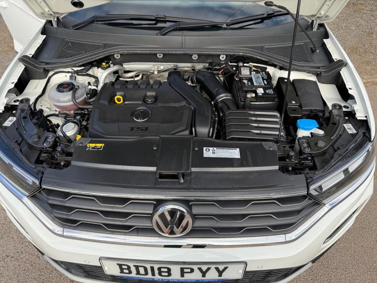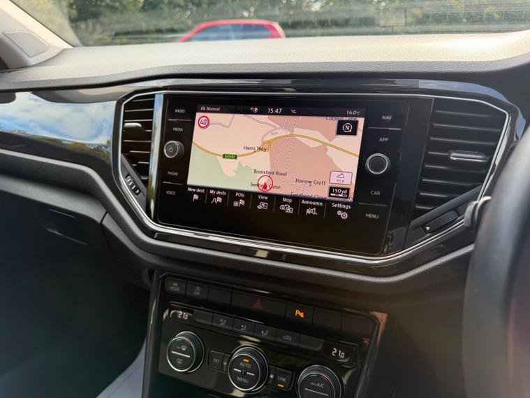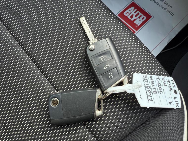 This 2018 Volkswagen T-Roc TSI EVO SEL boasts a full dealership service history, with its last service completed on 06 June 2025 at 40961 miles, and has had only one owner from new. This Euro 6 compliant 1.5 litre petrol engine model comes with a low mileage of just 41510 miles for its age. Notable features include a panoramic sunroof with opening function, sports styled body coloured bumpers, and dark grey decorative inserts in the dash and door panels. It also benefits from darkened rear tail lights and front and rear parking sensors for added convenience.The T-Roc TSI EVO SEL offers impressive performance with an acceleration of 0-62mph in just 8.4 seconds, a highlight that shows its responsiveness compared to other vehicles. Its fuel economy is also a strong point, achieving an excellent 52 miles per gallon, and it has low CO2 emissions, indicating its efficiency. These combined highlights make this Volkswagen T-Roc a compelling choice for those seeking a well maintained and enjoyable driving experience..